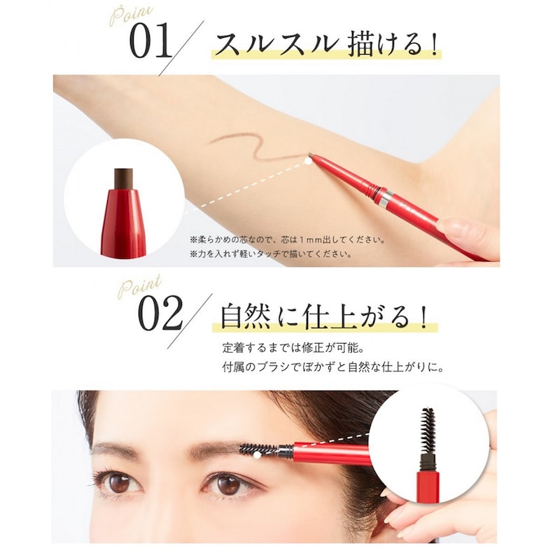 芯がやわらかく、なめらかな描き心地のペンシルタイプのアイブロウは、軽いタッチでスルスル描けて、濃淡や太さも自由自在。