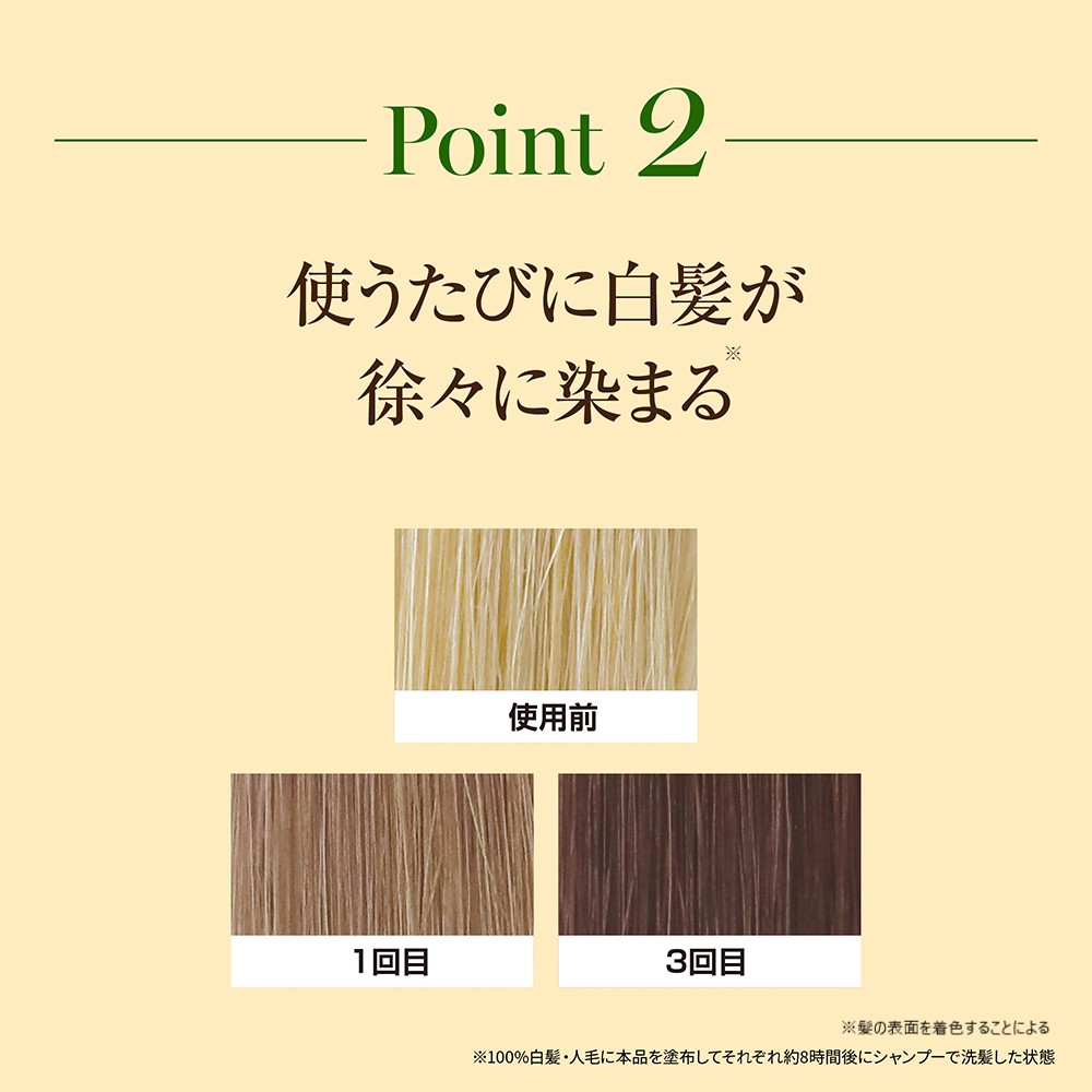 白髪の気になる部分に塗り、しっかりと乾かしてください。