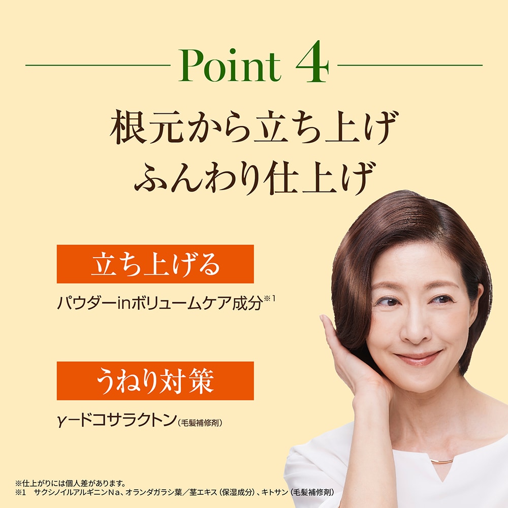 自然なスタイリング効果のあるパウダーin処方で、髪の立ち上げ部分にボリュームをプラス。