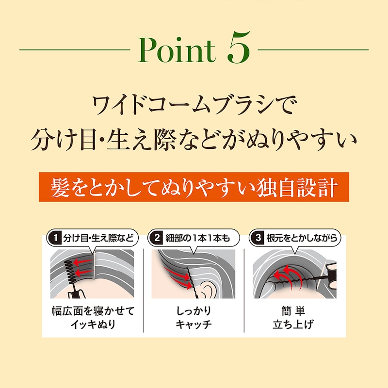 独自カットした約45mmのワイドコームブラシで、広範囲にもピンポイントにも塗りやすいのがうれしいポイントです。