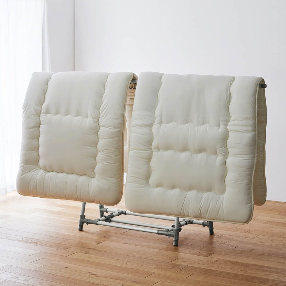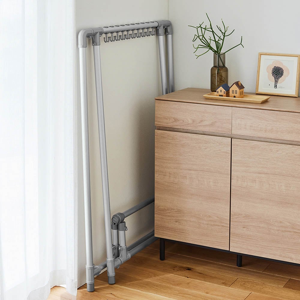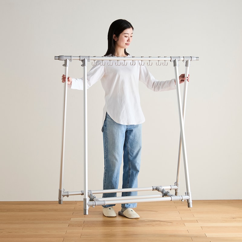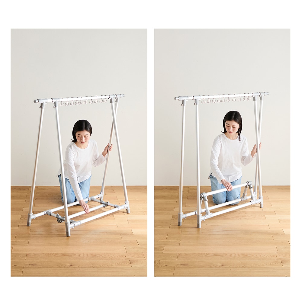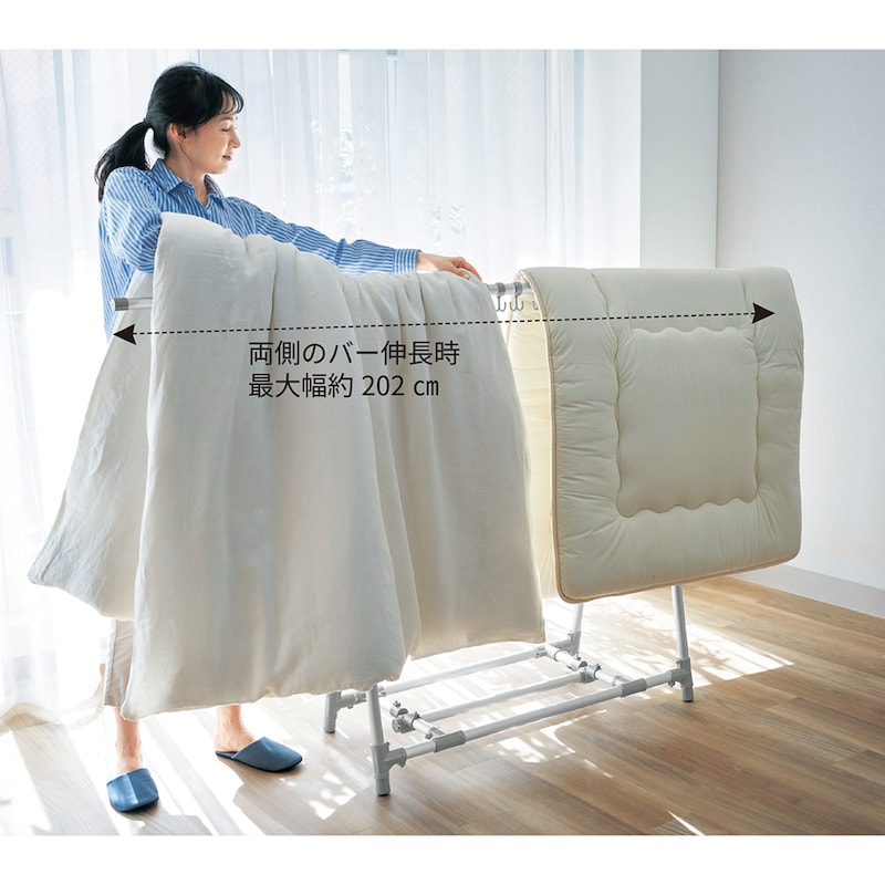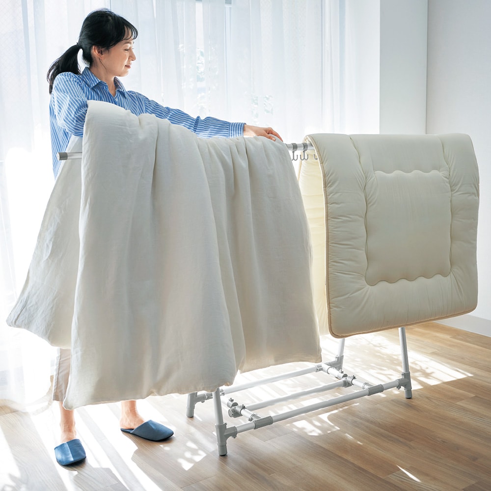 軽量だからサッと出して、横からスッと簡単に、通気性良く、省スペースで、布団が干せる
