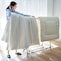 ●低めの高さ設計で、布団を横からスライドさせるだけなので、女性でも手軽に干せる