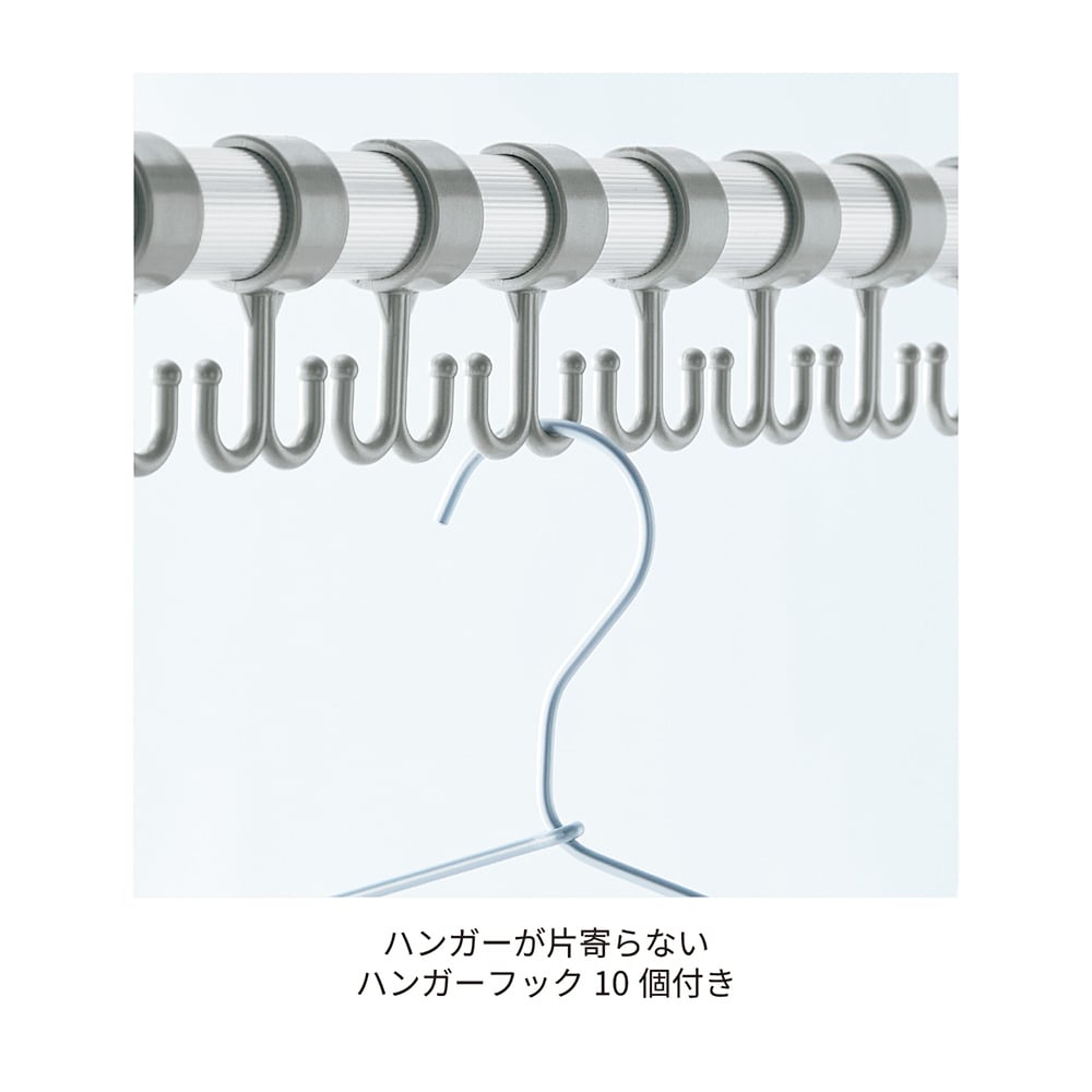 ●風などによる洗濯物の片寄りを防ぐ、便利なハンガーフック10個付き