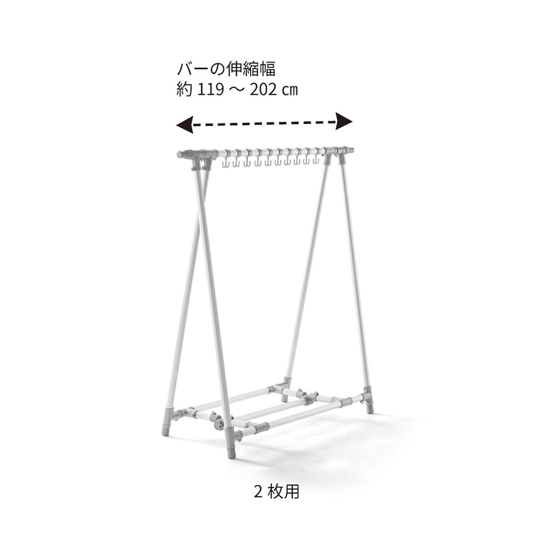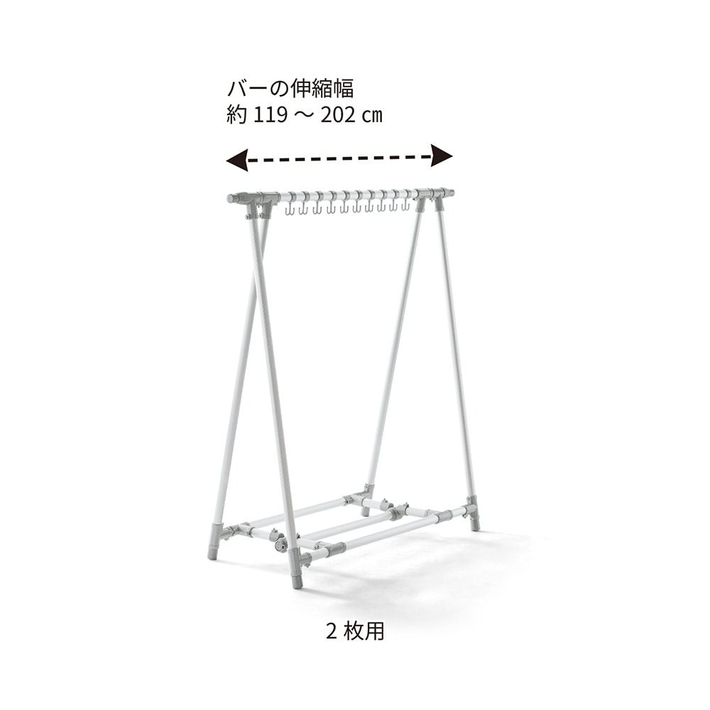 ●2枚用タイプは竿部分が伸縮式で、布団2枚を干すことができます