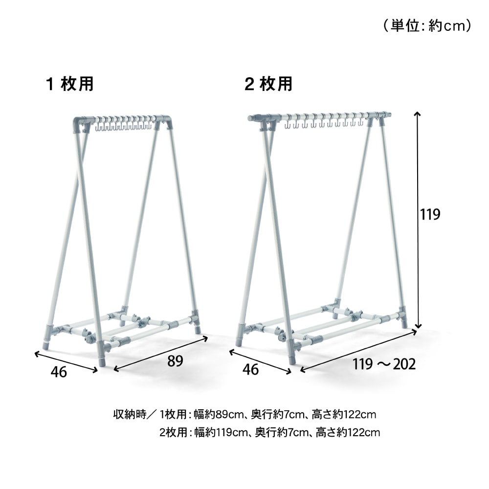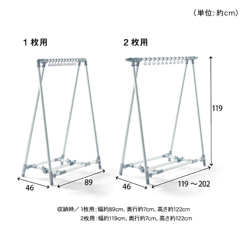 ■2枚用/使用時:幅約119~202、奥行約46、高さ約119cm、収納時:幅約119、奥行約7、高さ約122cm
