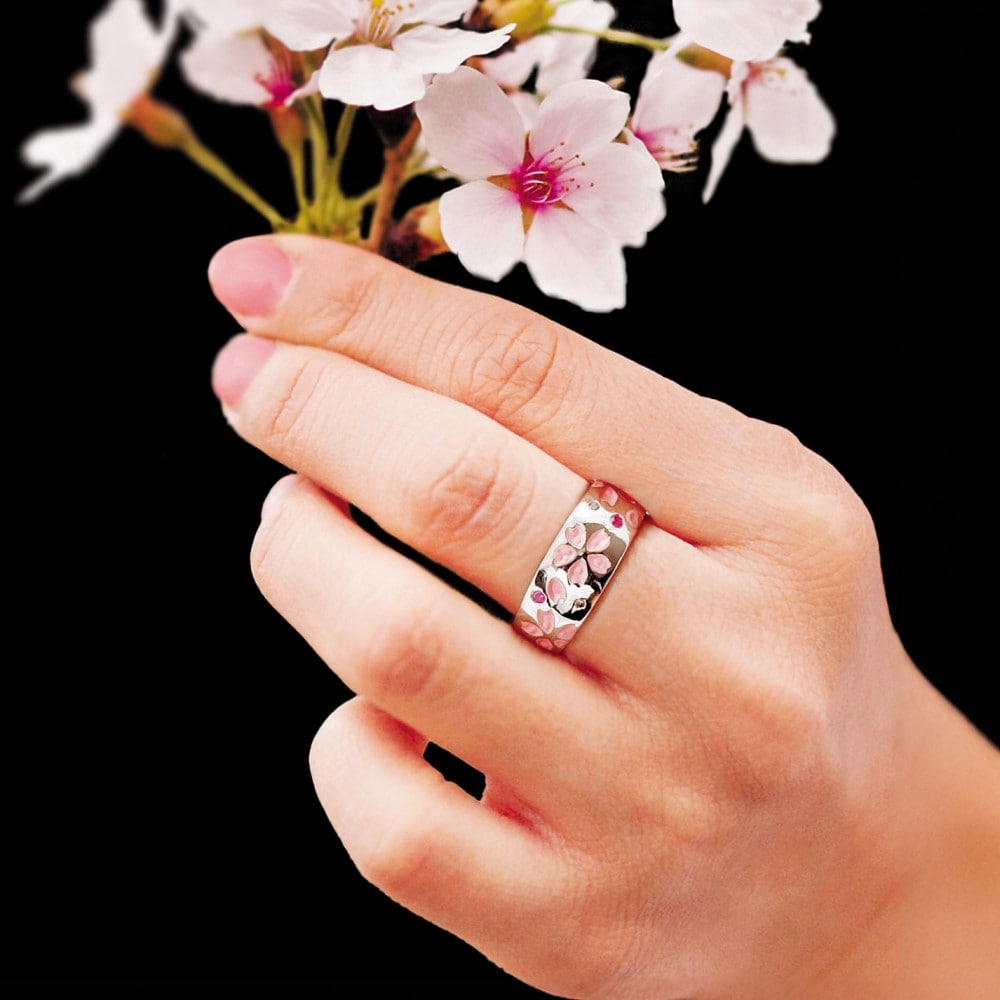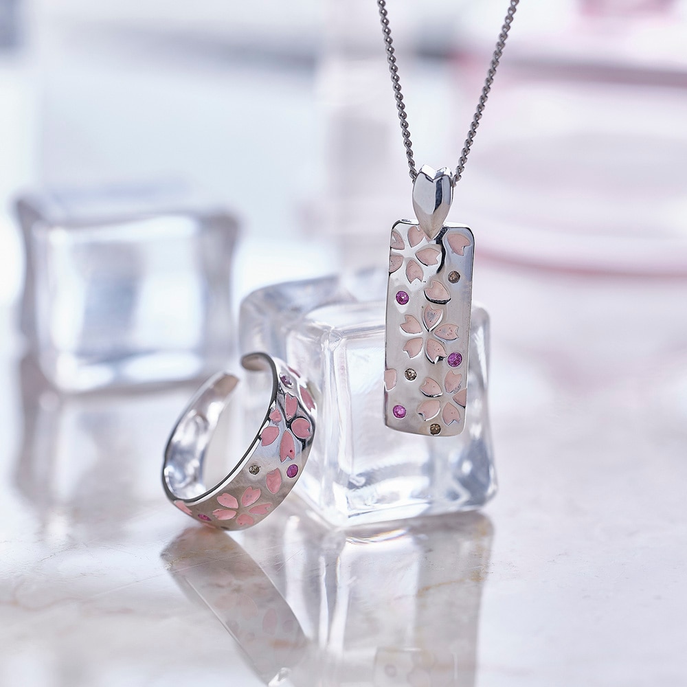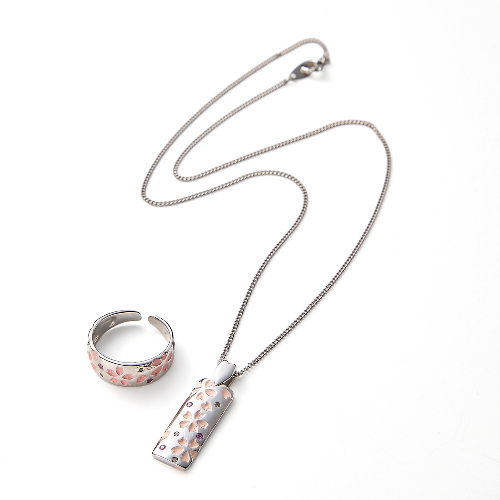 ピンクサファイア&ダイアモンド 桜デザインのネックレスとリング