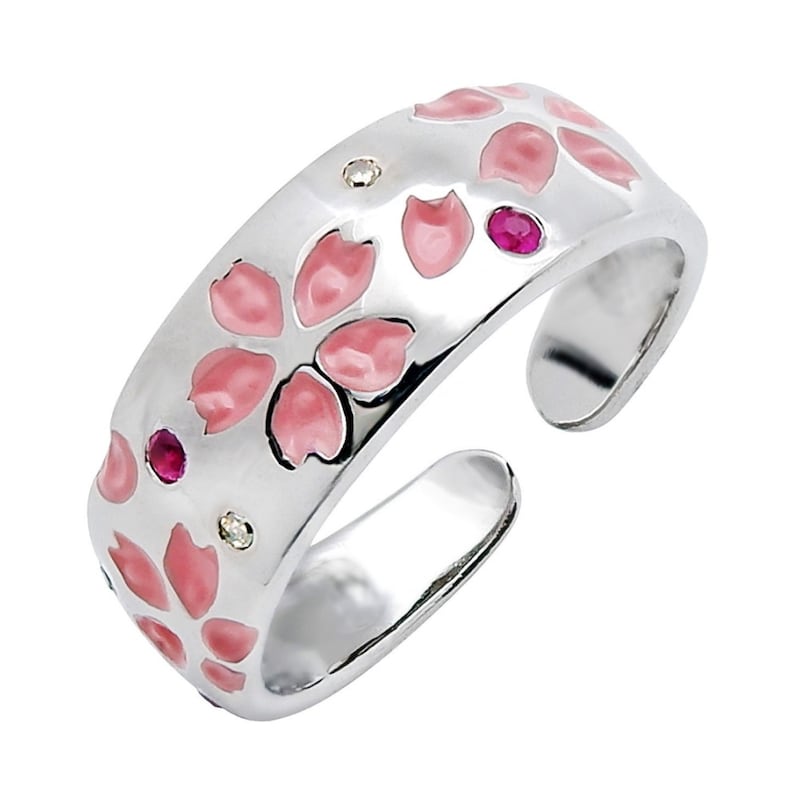 リング本体:真鍮、ロジウムメッキ、ピンクサファイヤ、ダイアモンド