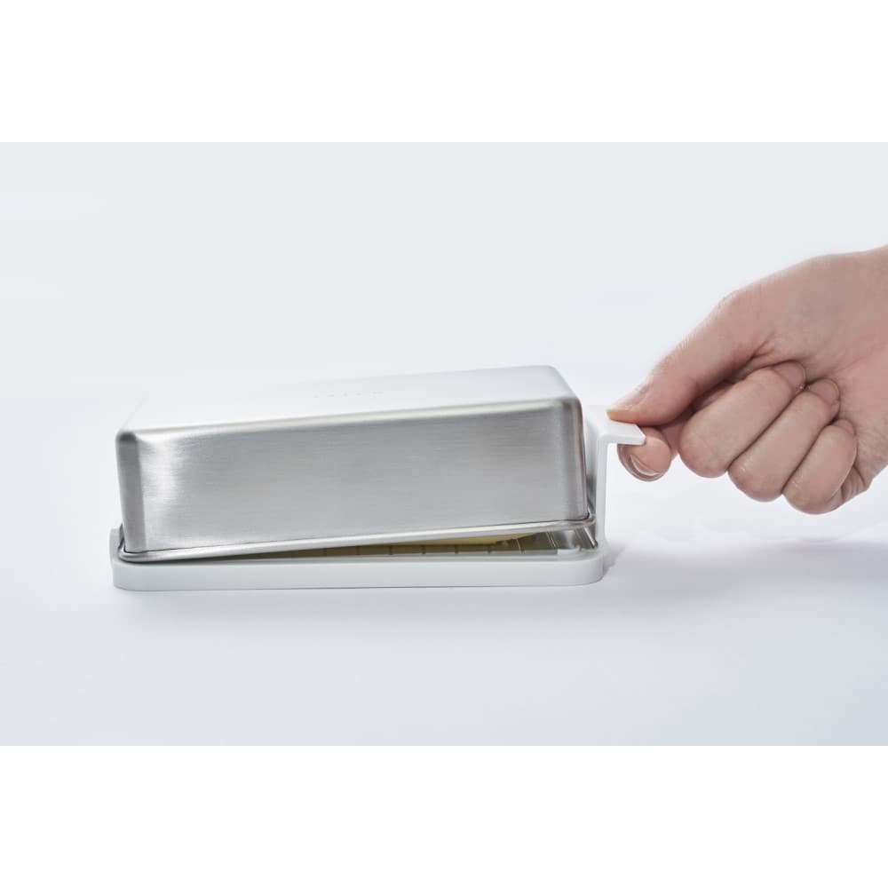 Butter Case/ステンレス製のフタでにおいがつきにくく、清潔に使えます。トレーには切り分けのしやすいようなラインが入っています。
