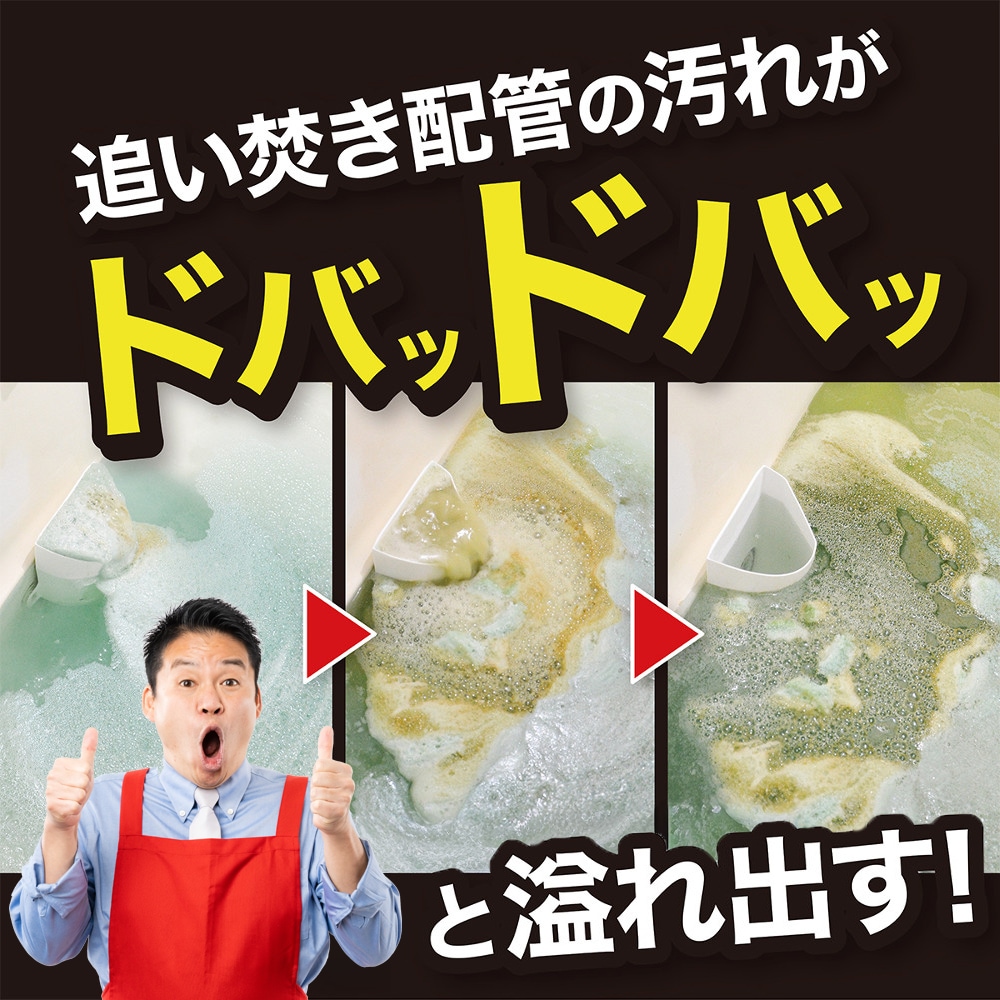 の高濃度洗浄液を配管内に循環させ、こびりついた皮脂・湯アカ・雑菌・ヌメリ等の汚れをしっかり洗浄