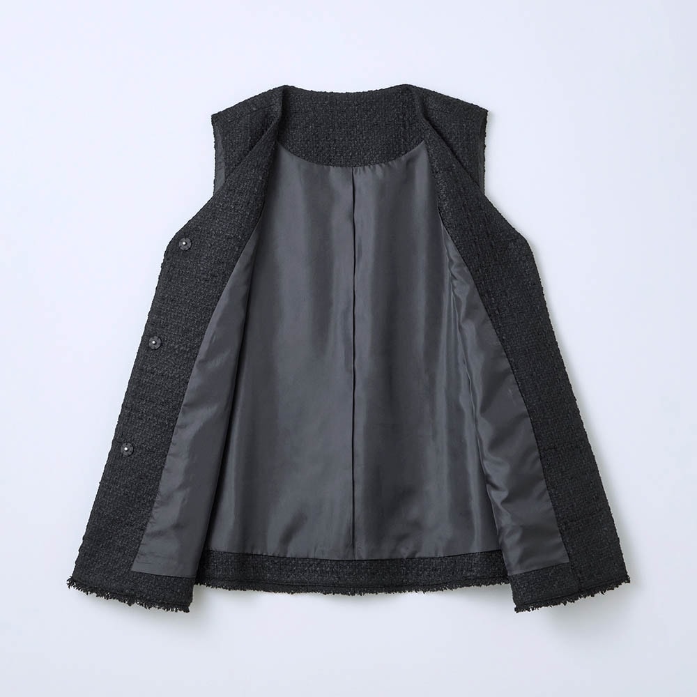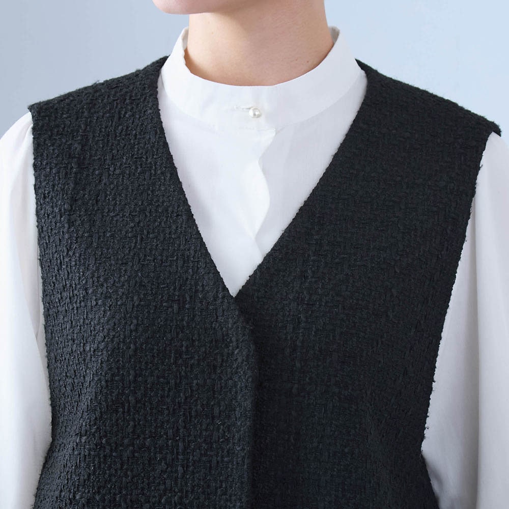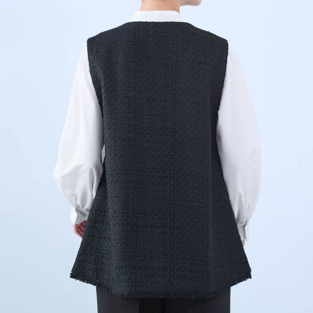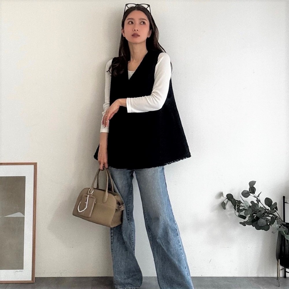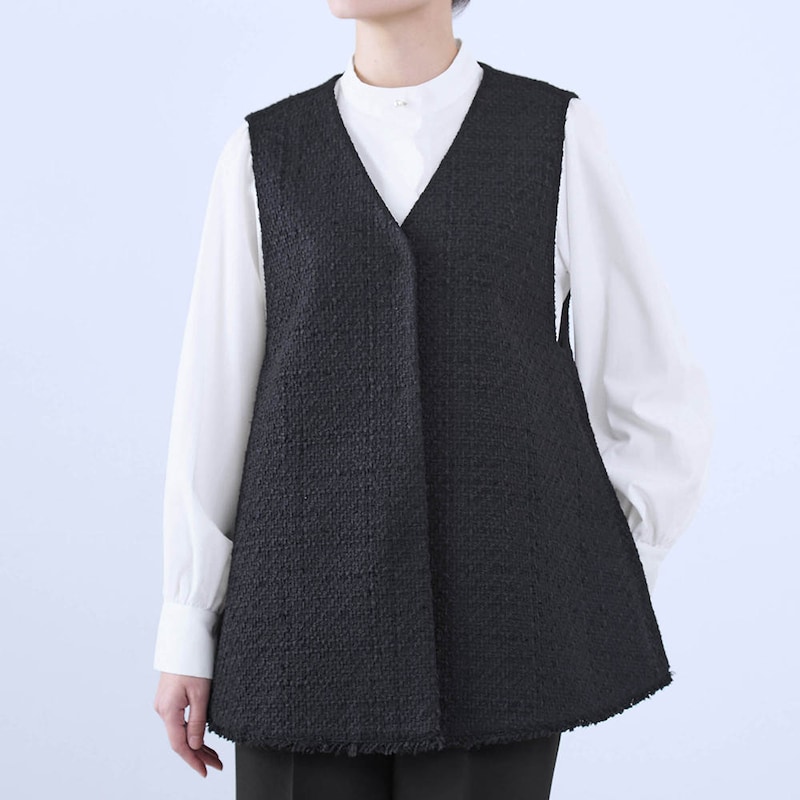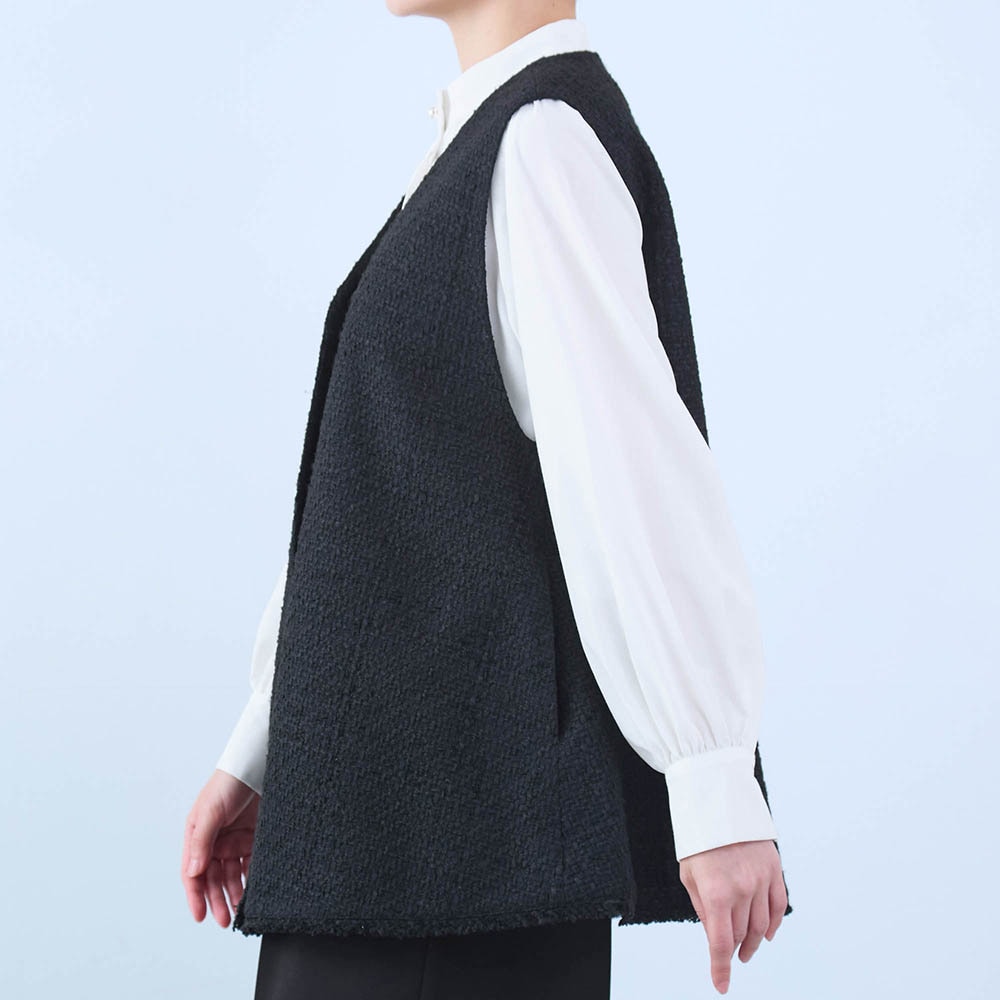 ツイードジレ/ワイドパンツ/スカラップブラウス