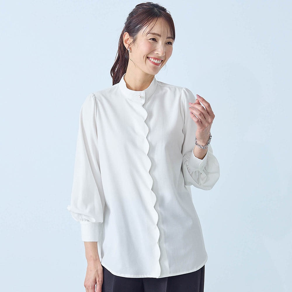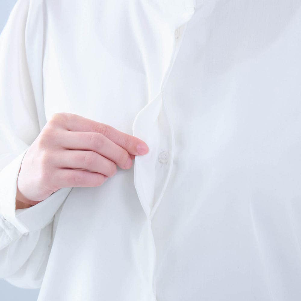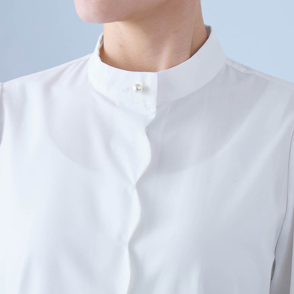 ・一番上にはさりげないパール調のボタンでアクセサリーいらず