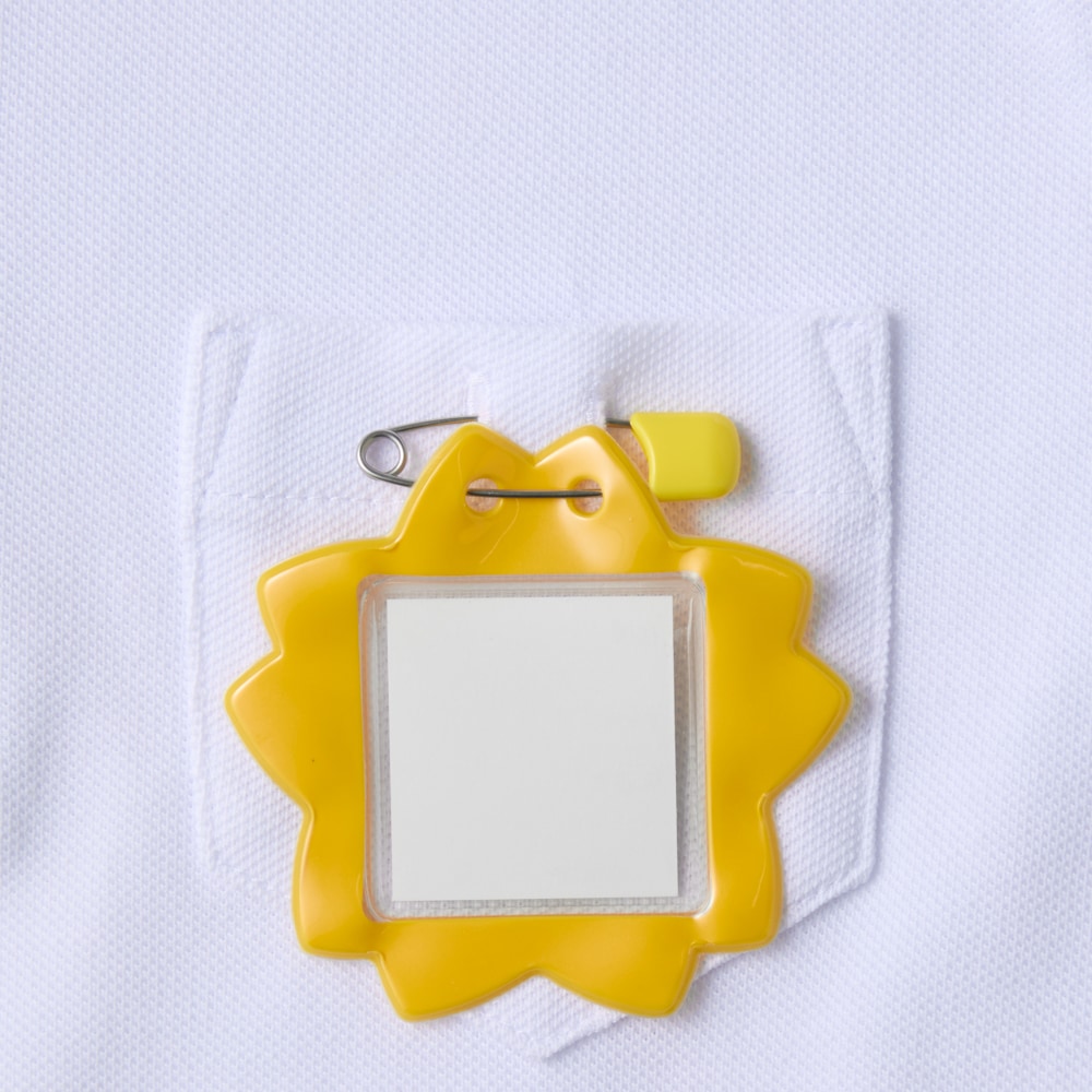 ●左胸に名札の針用の針穴の「名札付けポイント」が付いているから、針で生地が傷みません。