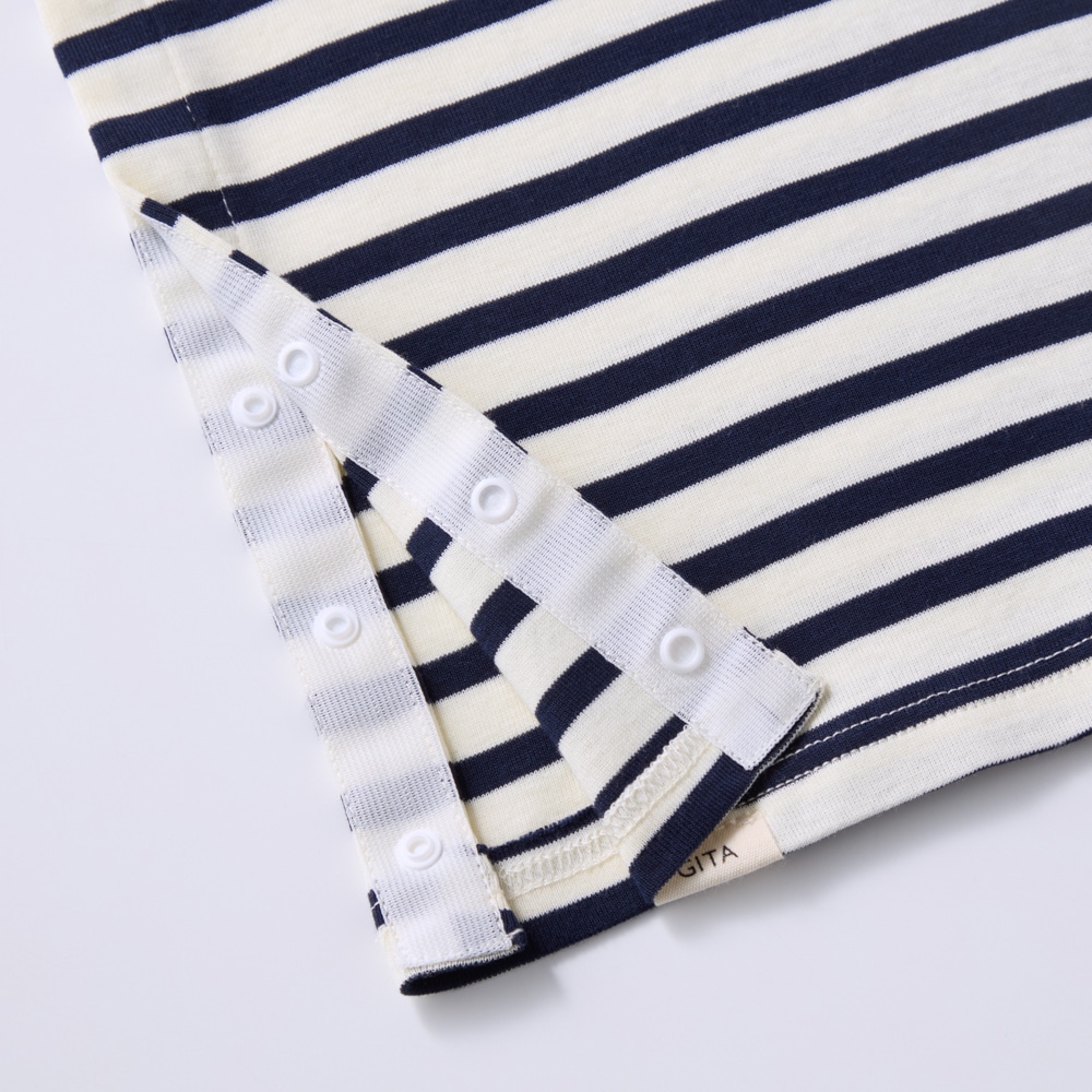 ●左右の袖から裾までスナップボタンで開くから、着るだけでなく、着せるときの負担も軽減できます。