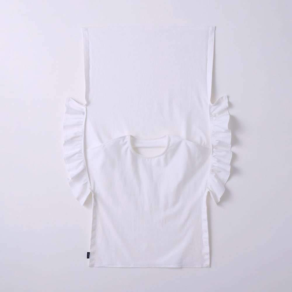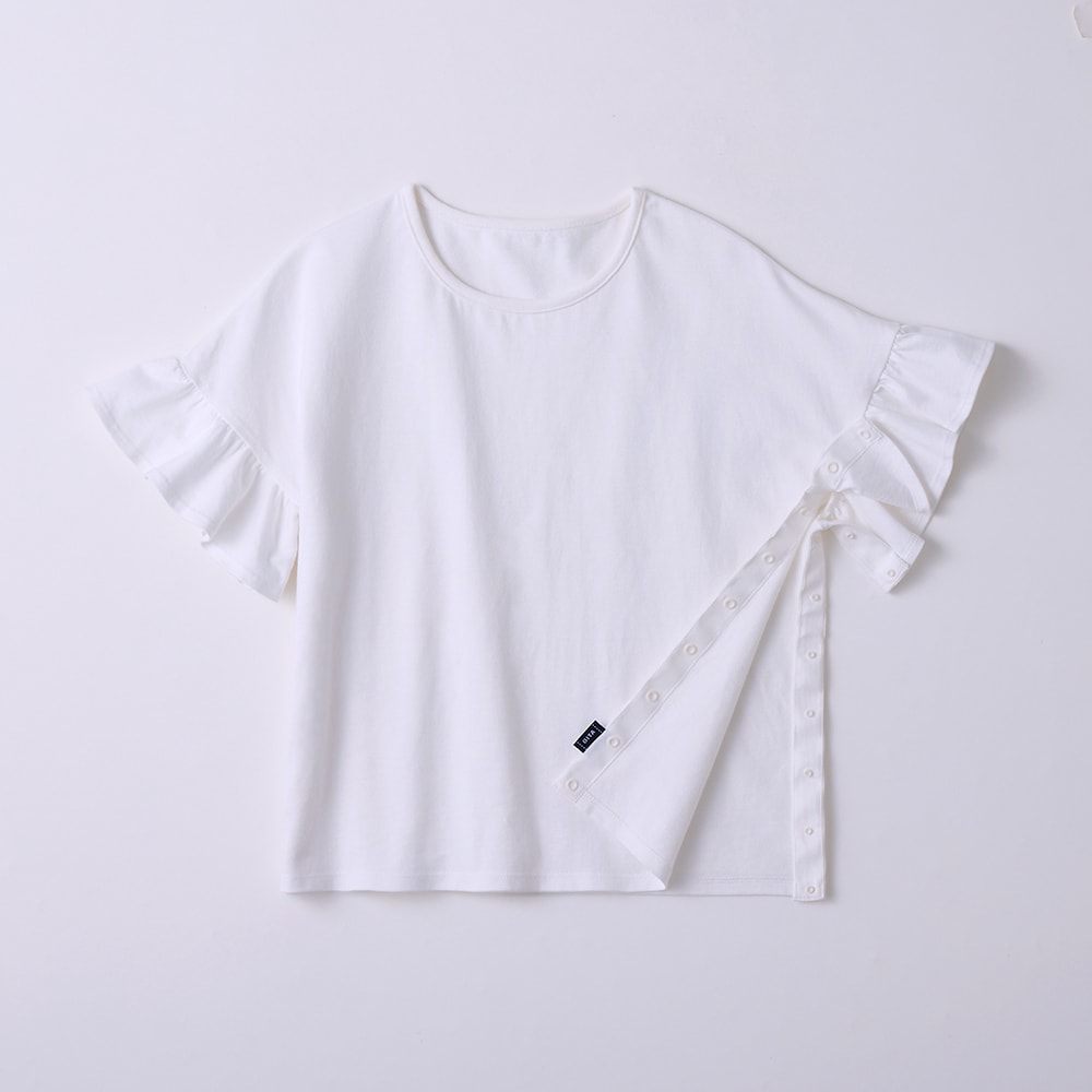 まるっと開いて、するっと着やすい。シンプルとかわいいが両立したフリル袖ガーリーTシャツが障害や病気のある方が着やすいインクルーシブなウェアになりました。