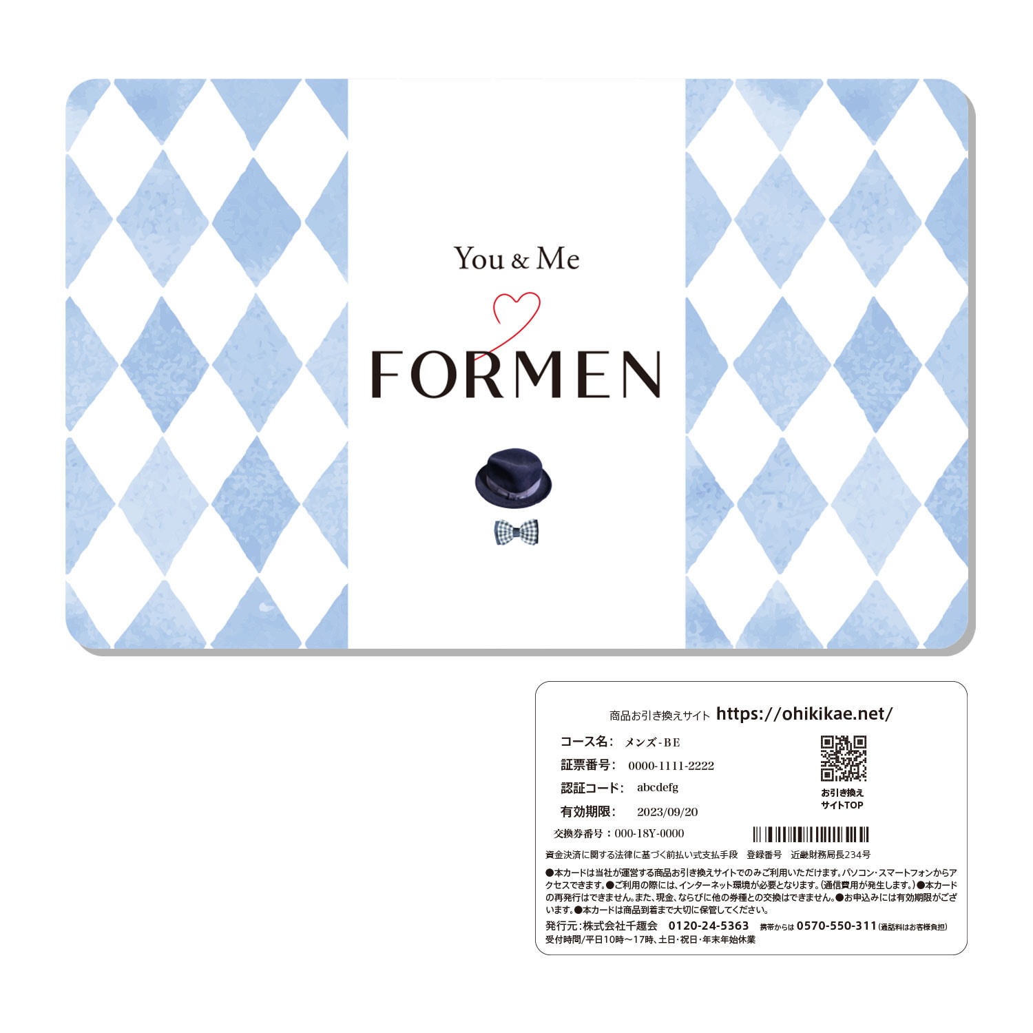 【10%OFF&送料無料】 【カードギフト】メンズギフトカード「You&Me MEN’S」<BE>