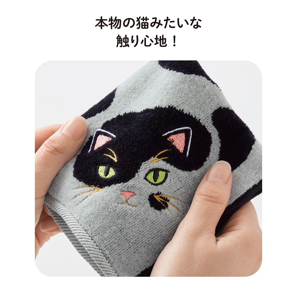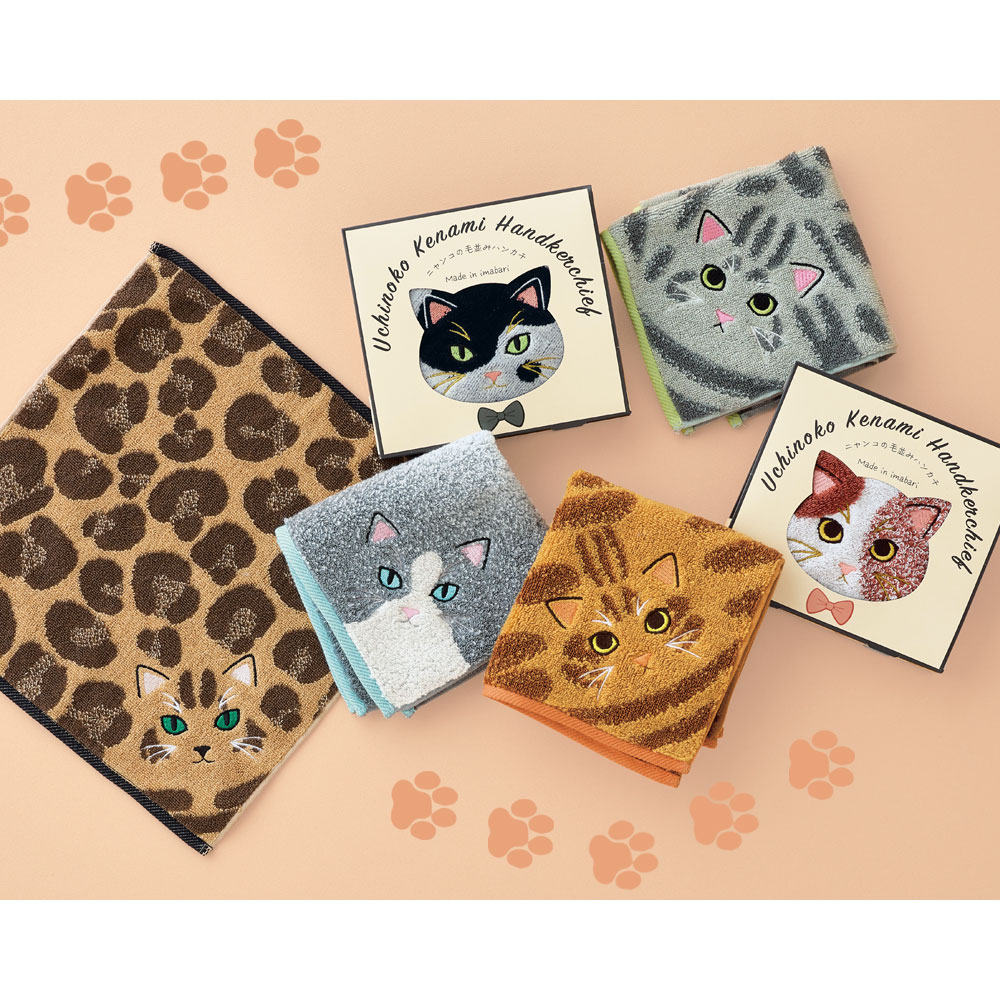 毛並みまで表現した個性豊かな猫柄のハンカチ。