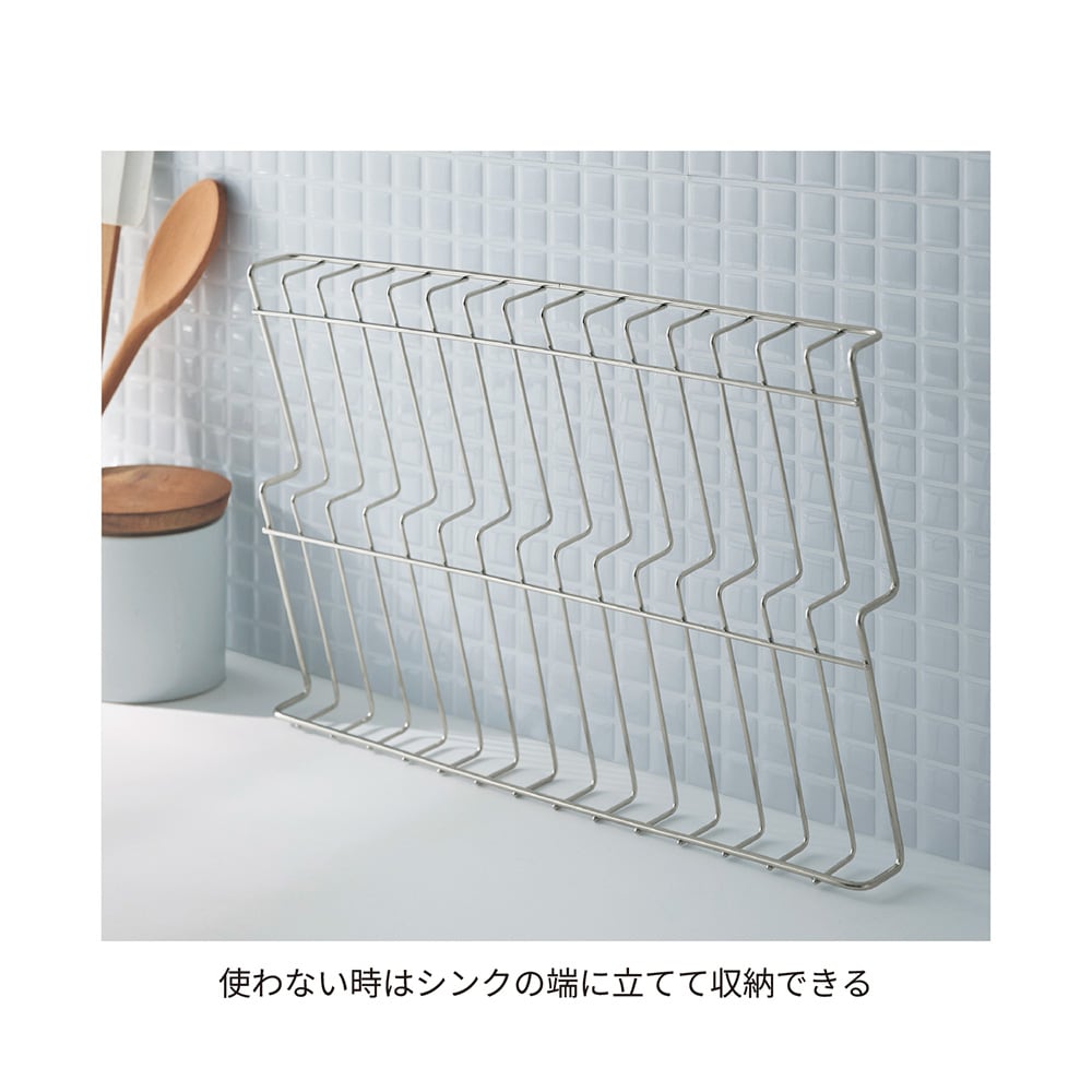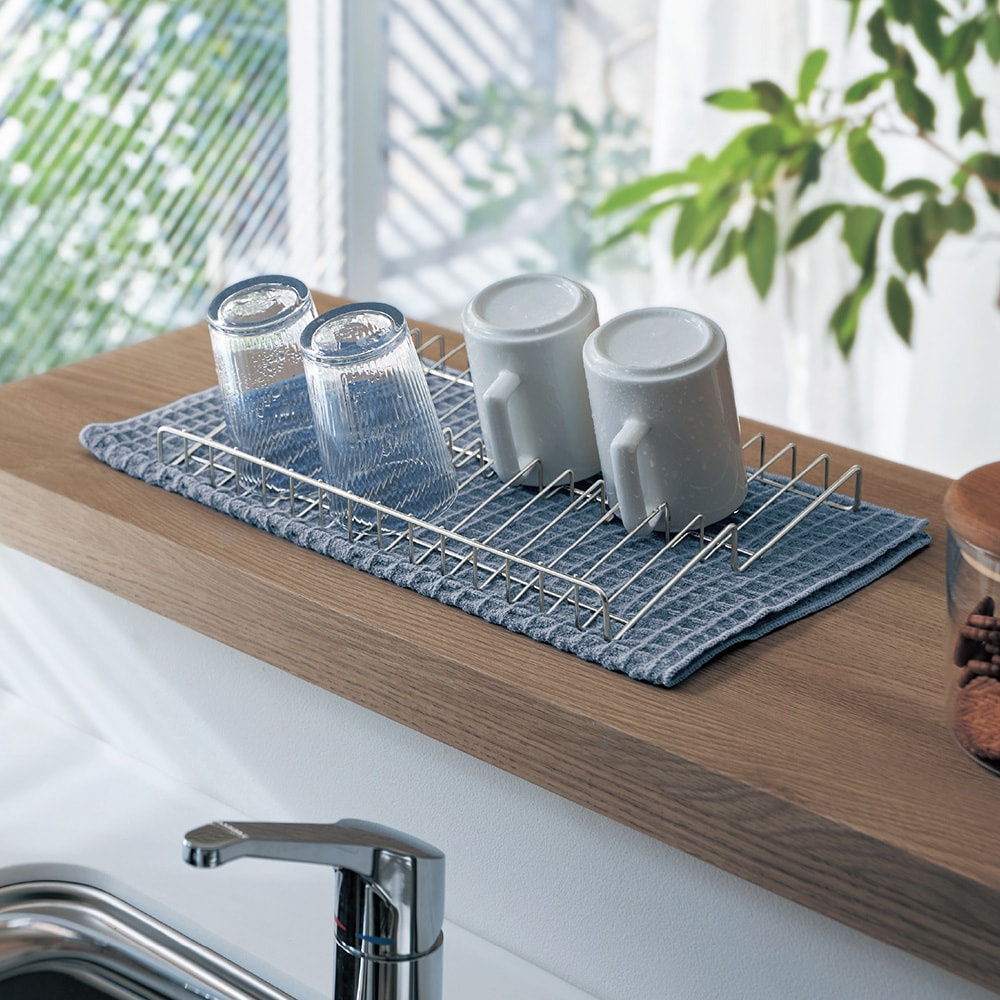 ●水切りが波形状になっており、斜め置きができるのでコップなどの水が切れやすい