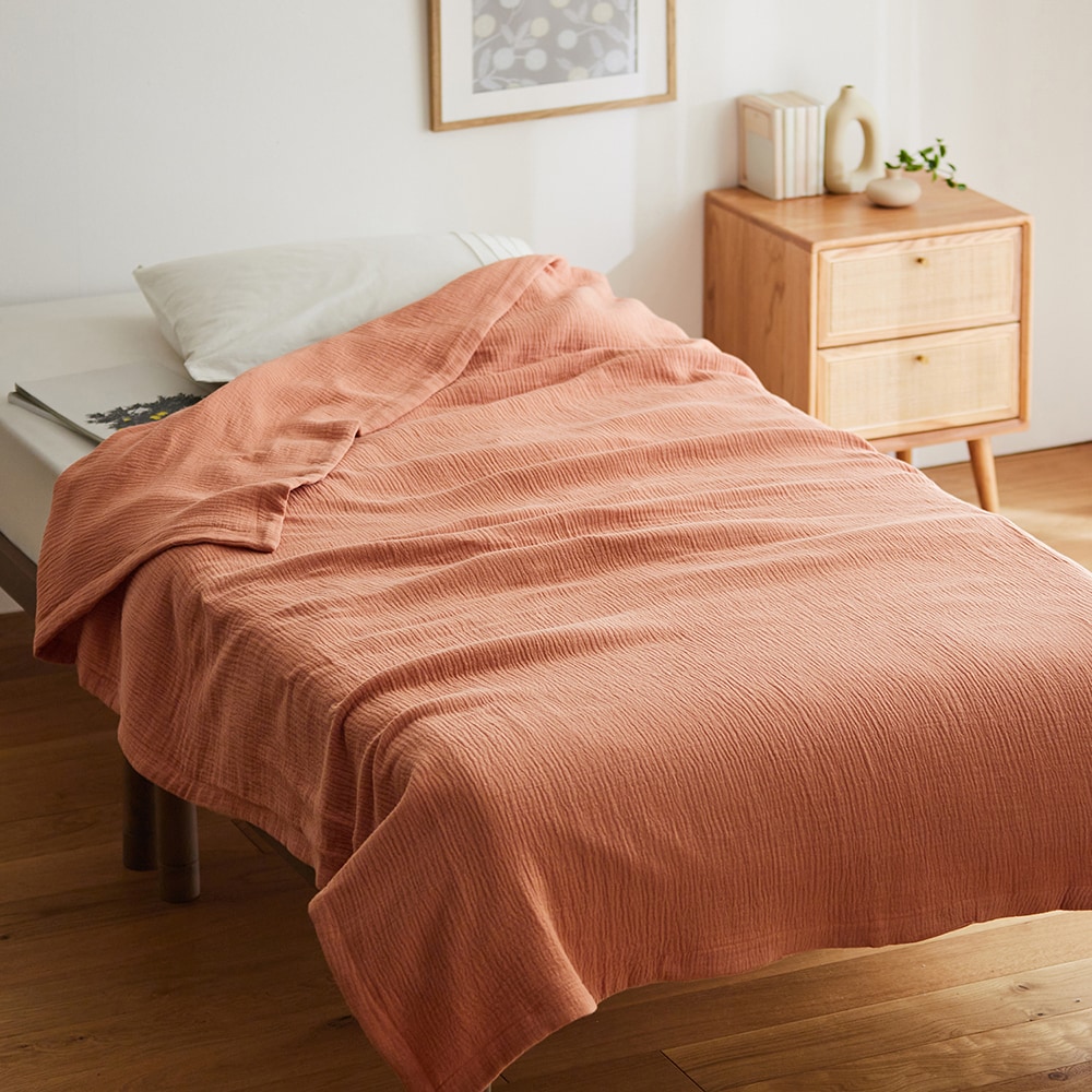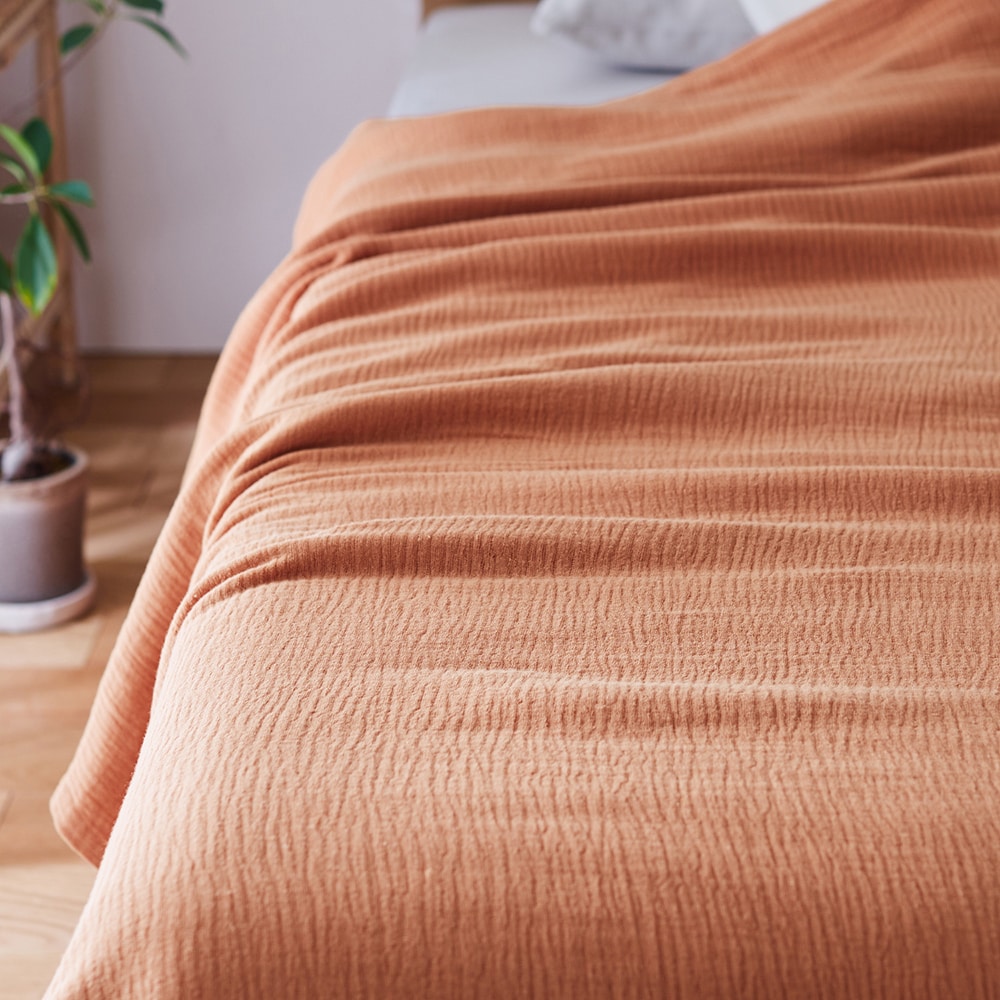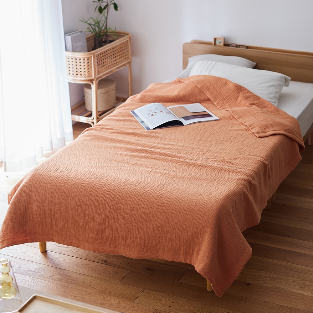 洗いをかけた、やわらか綿素材の6重ガーゼケット