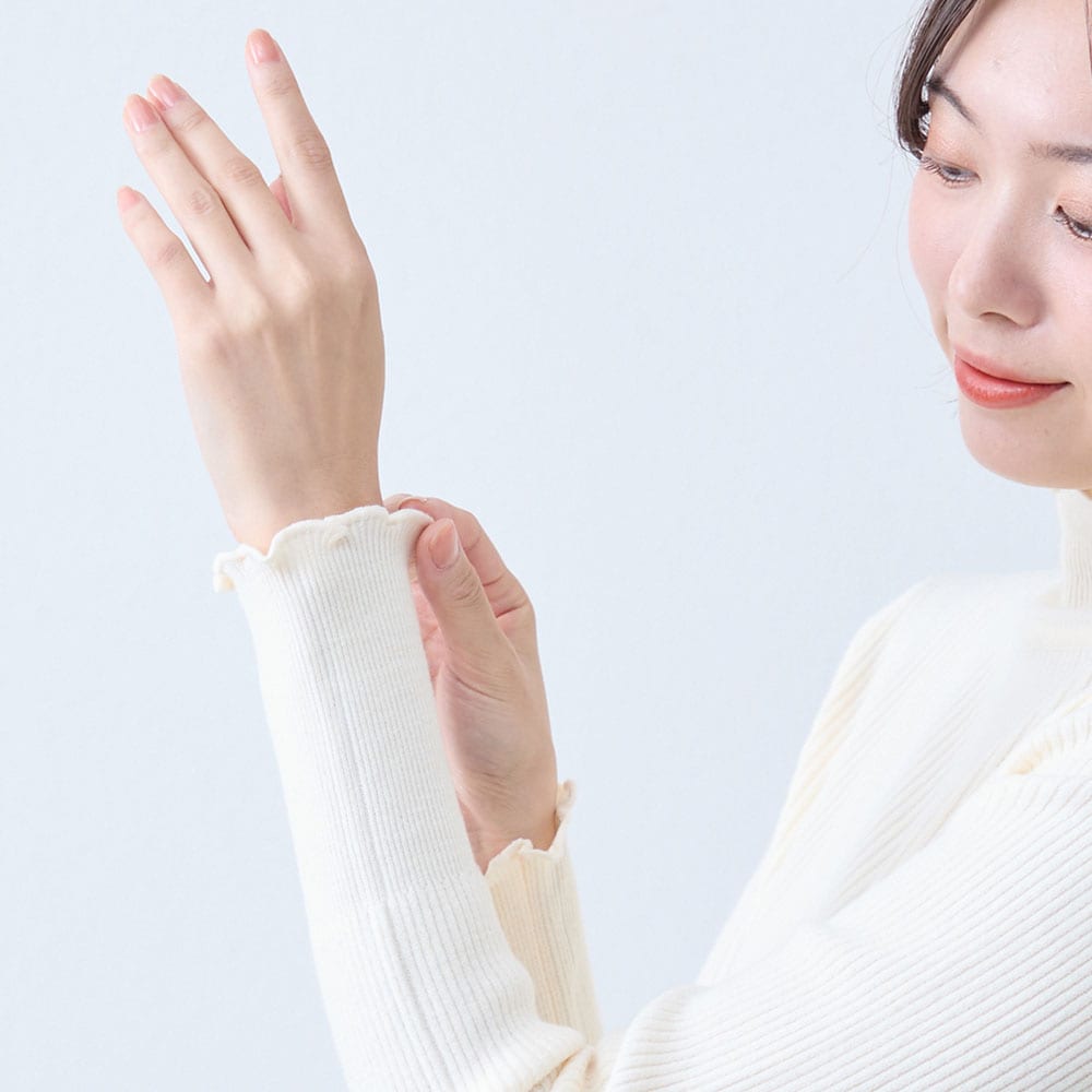 手触りがもちもちしていて,気持ちがいいです。でもジャケットの下とかに着ていたら,毛玉ができて,ちょっとみすぼらしくなってしまいました。できれば,毛玉になりにくいと嬉しいです。