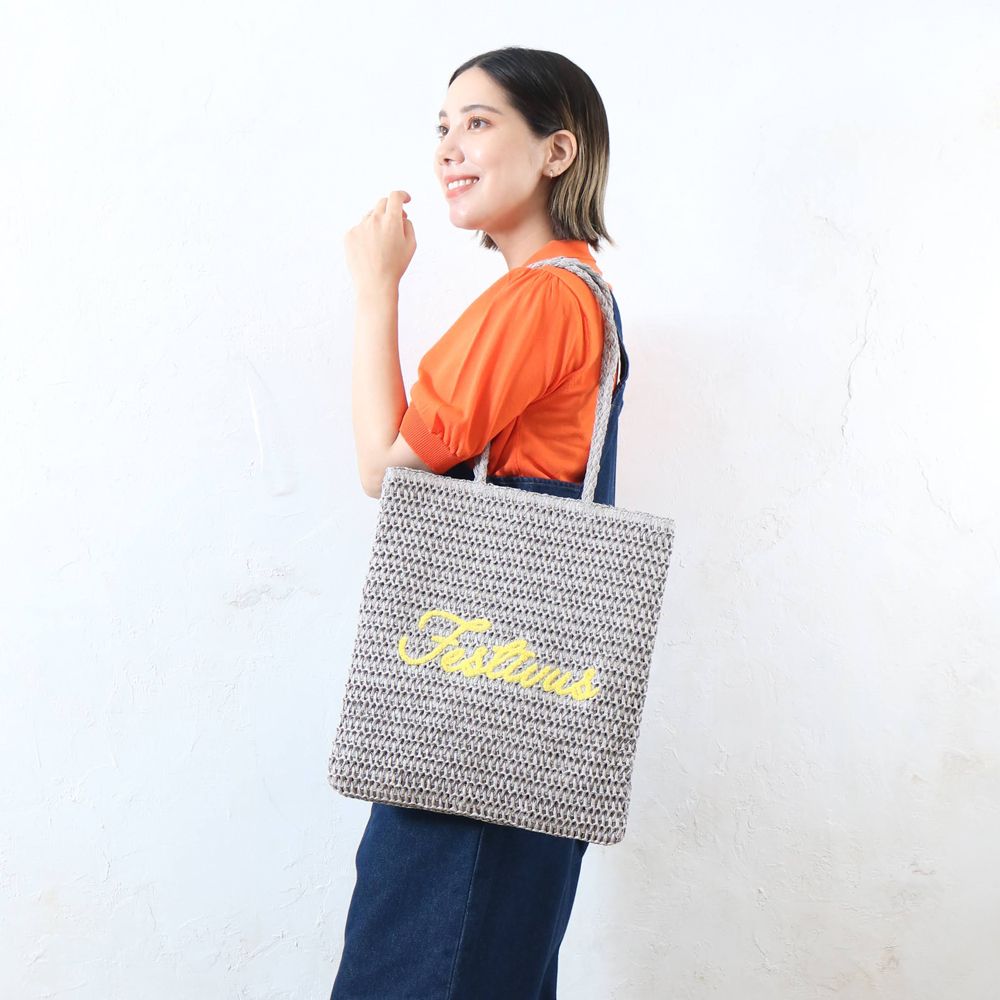 サガラ刺繍ペーパーメッシュ素材フラットトートバッグ