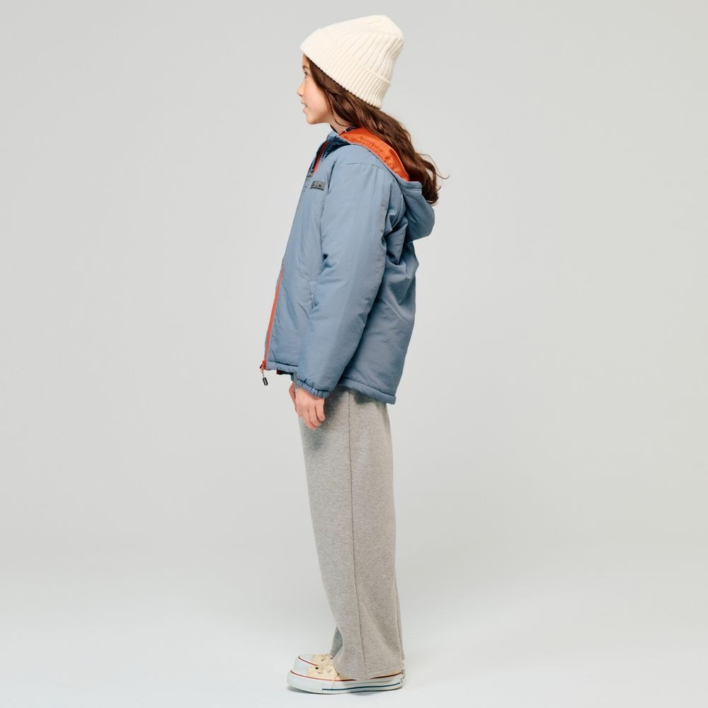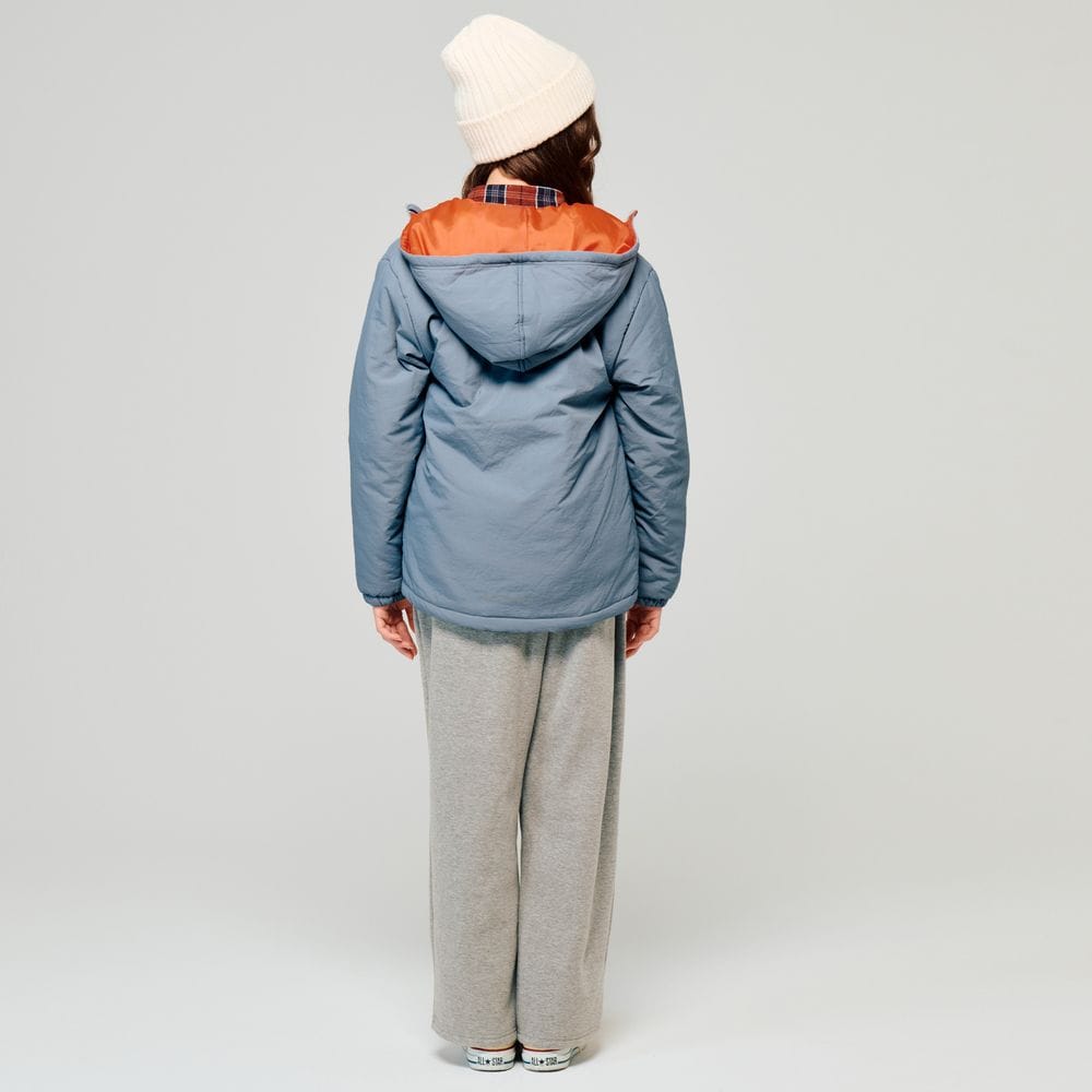 ・フードの裏地やファスナー部分にはさりげない配色アクセントが入り、シンプルながらおしゃれなデザインに仕上がっています