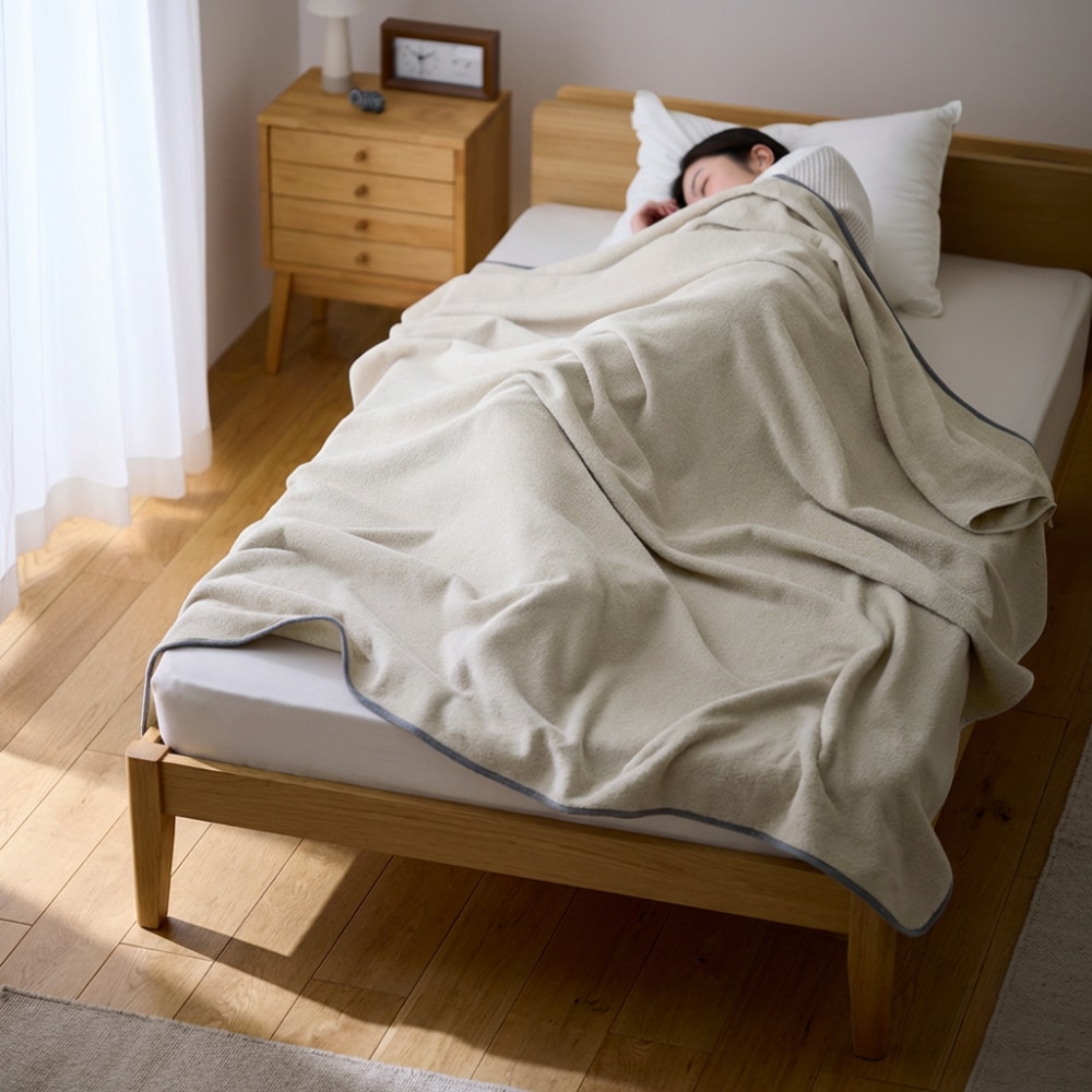 ・夏場の寝室で、汗をしっかり吸い取る寝具を求める人に