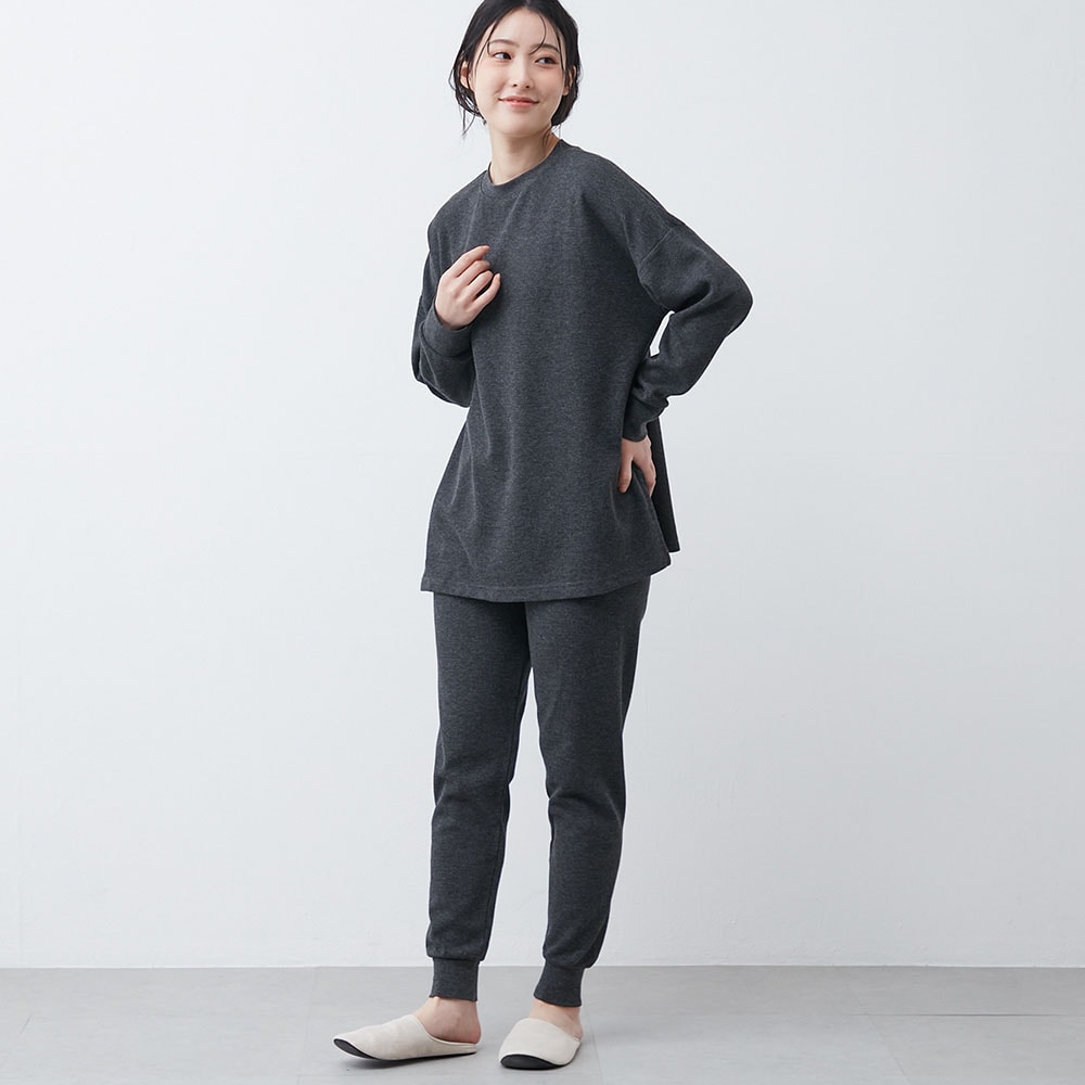 お腹まですっぽり、ゆったり着られる◎ワッフル生地の長袖パジャマ
