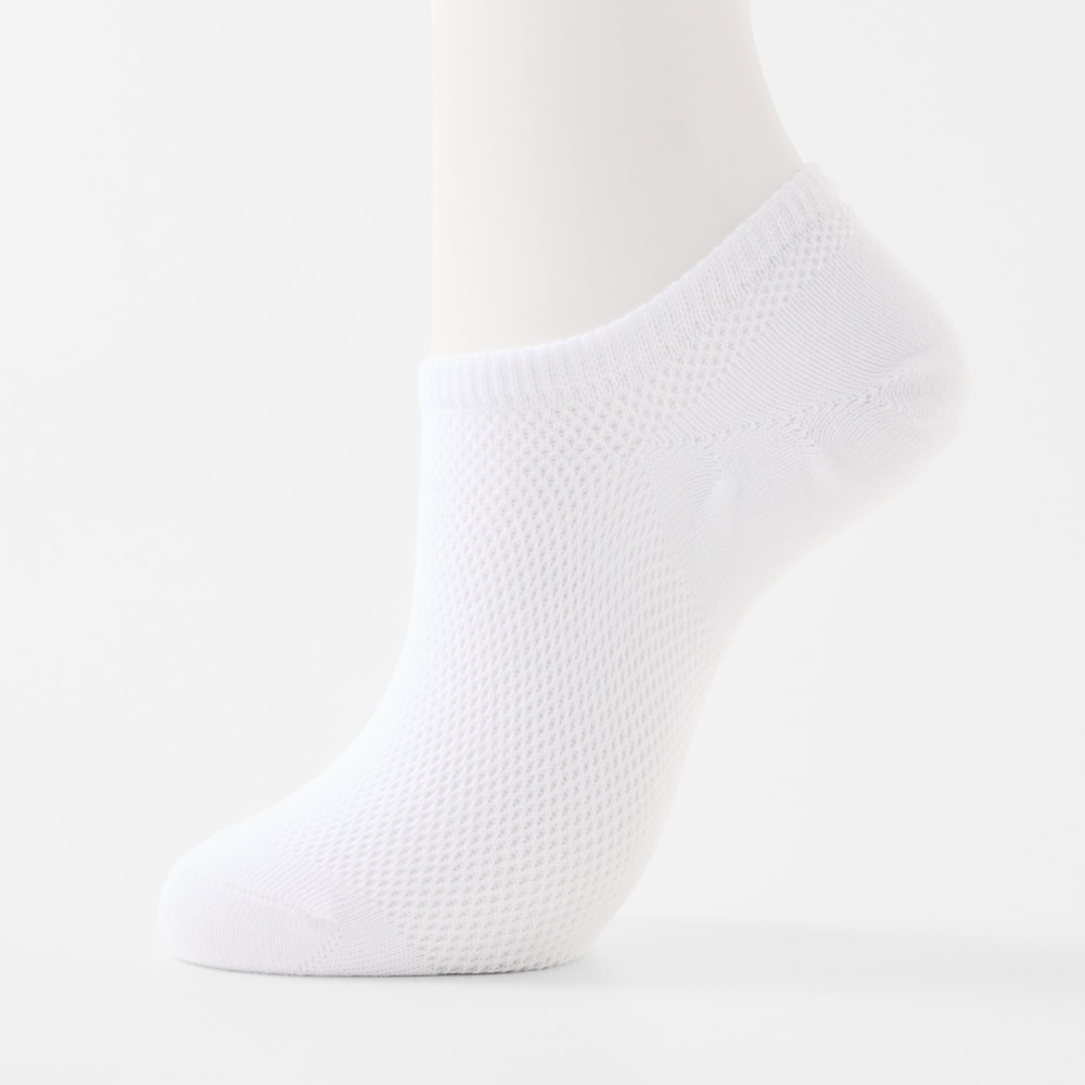 ・足の甲部分はメッシュ編みで、通気性を高めています。