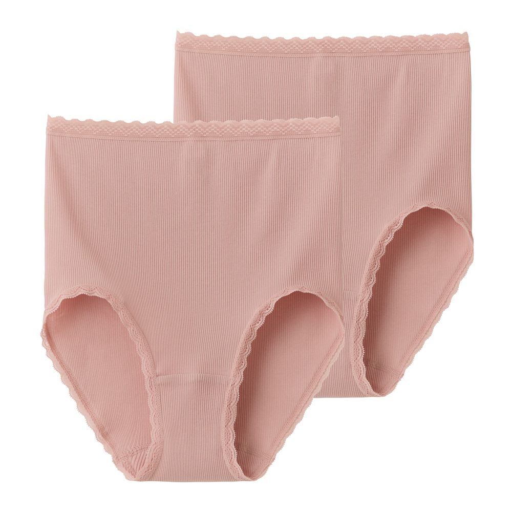 【2枚組】脇剥ぎなし深履きコットンリブショーツ