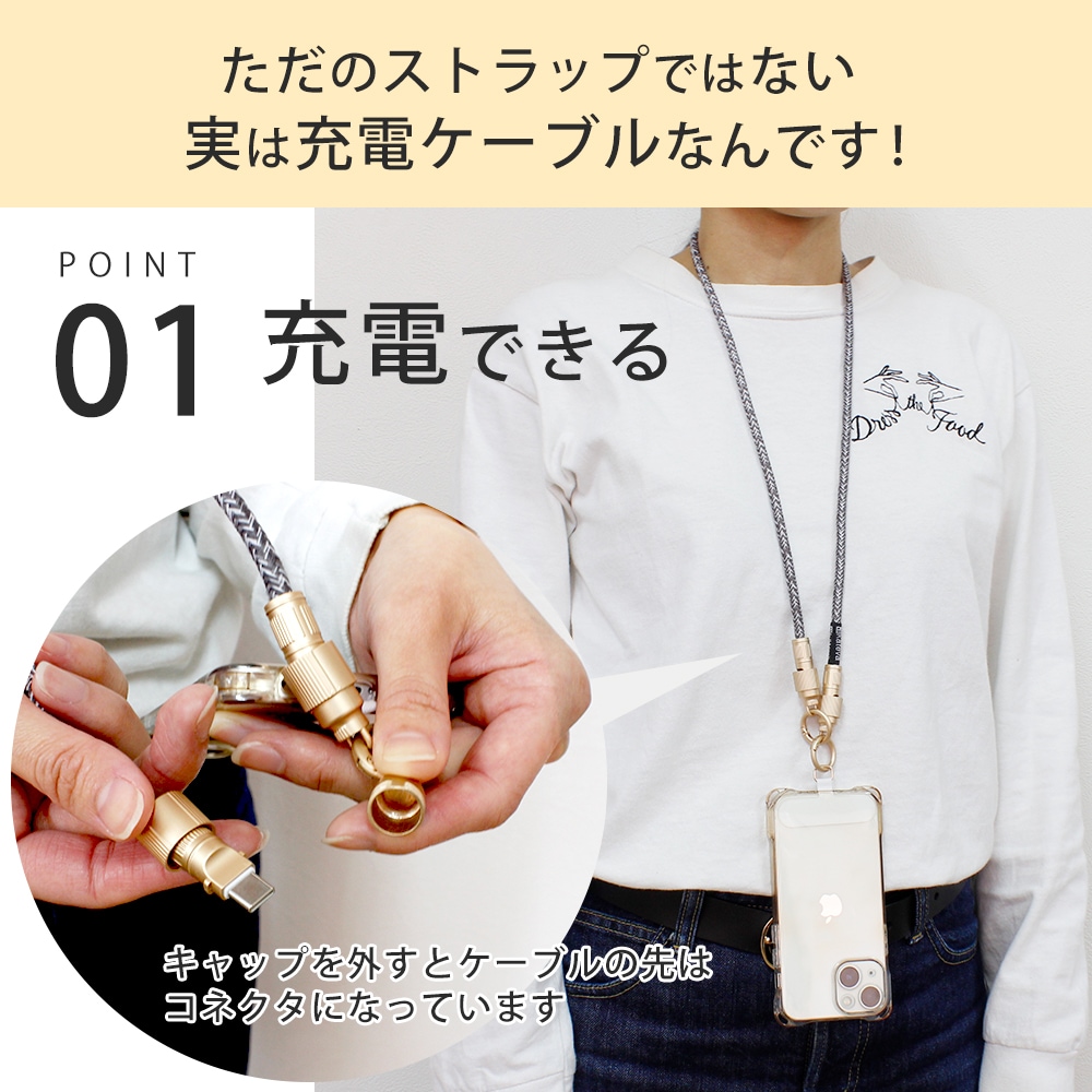 充電やデータ通信ができるスタイリッシュなスマホストラップ