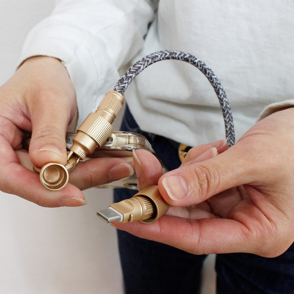 ●キャップをひねるだけでコネクタが登場、カフェや移動中もモバイルバッテリーと即接続できるスマートさ