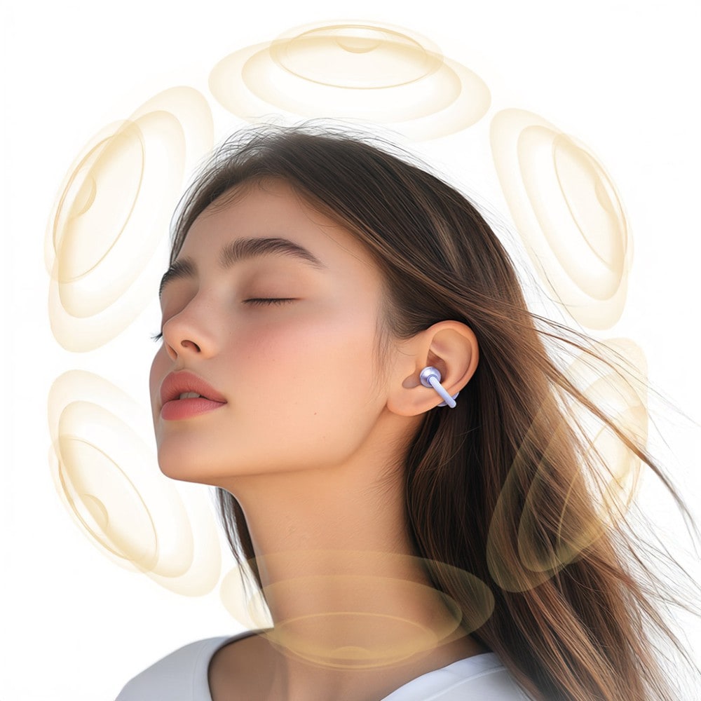 ●「ながら聴き」が叶うオープンイヤータイプのイヤホンは耳の穴を塞がないので、音楽を楽しみながら付けたままの会話も可能。