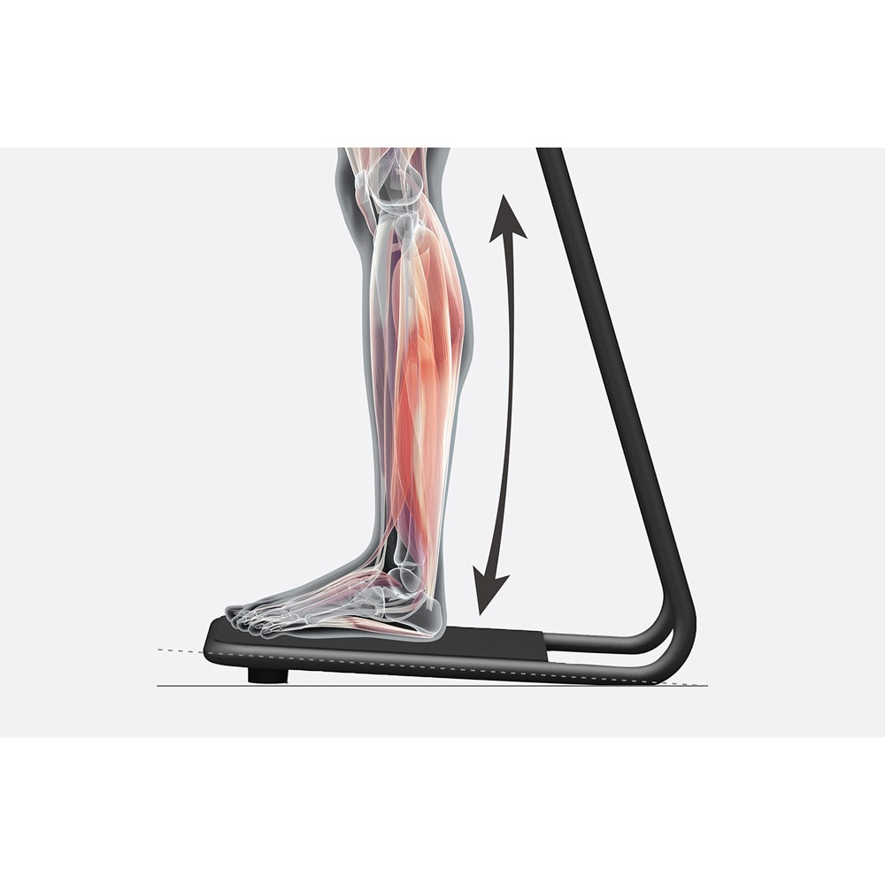 ●足元にゆるやかな傾斜を設け、腰の要である骨盤を支える構造により、通常の立ち姿勢では疲れやすい足腰にかかる負担を分散。