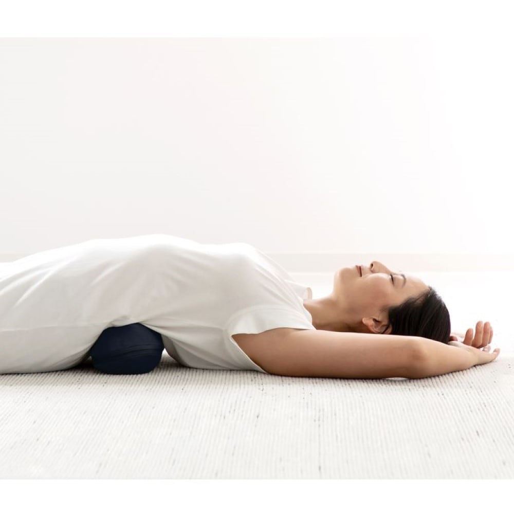 ●床に置いて上に寝転がると、体の重みで中央のくびれ部分が沈みこむしなり構造。