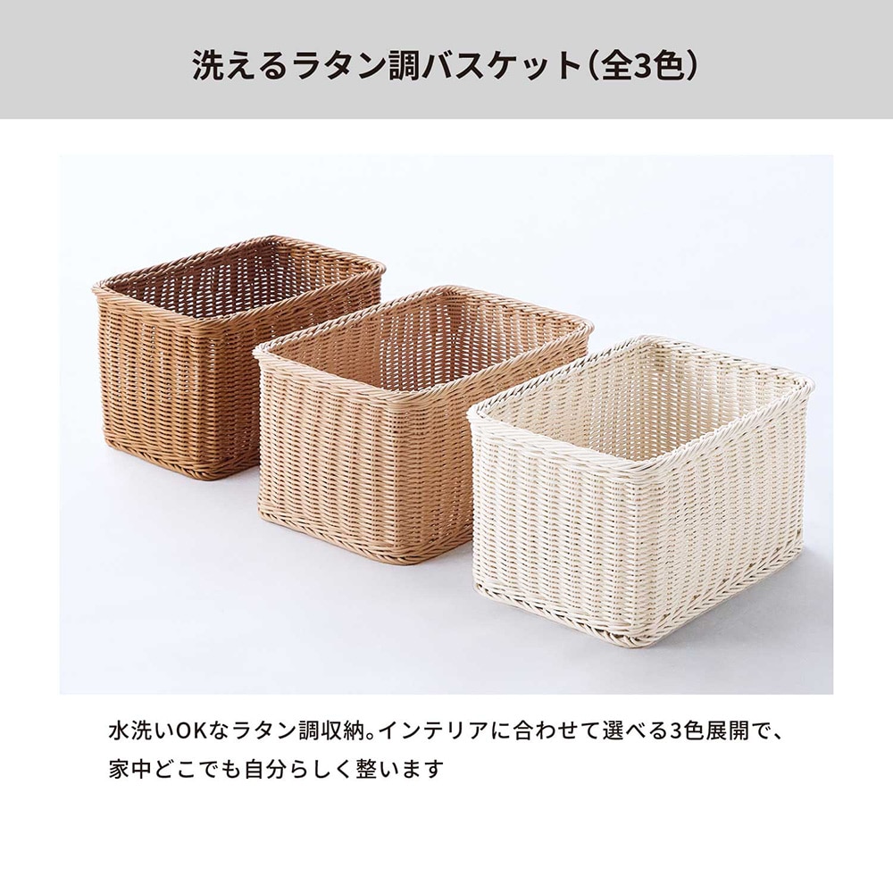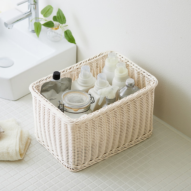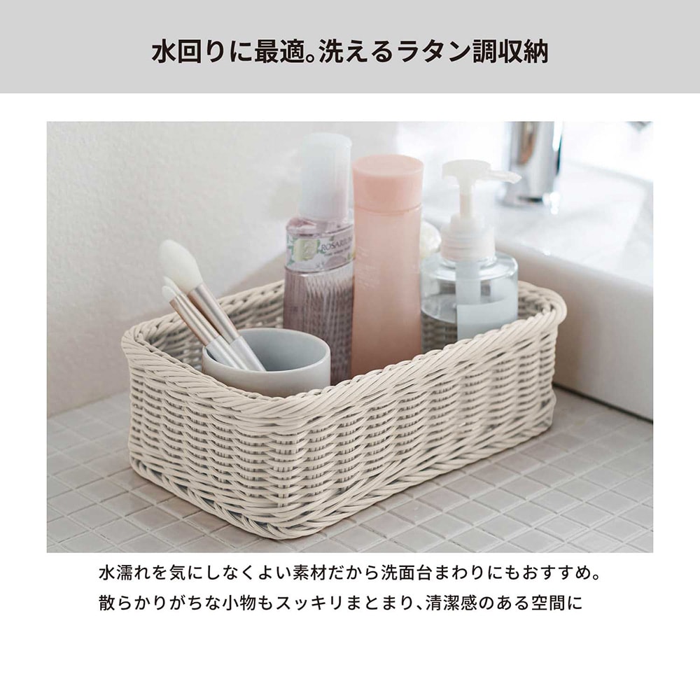 洗えるラタン調収納バスケット【オフホワイト】「wash rattan」 【選べる4サイズ】