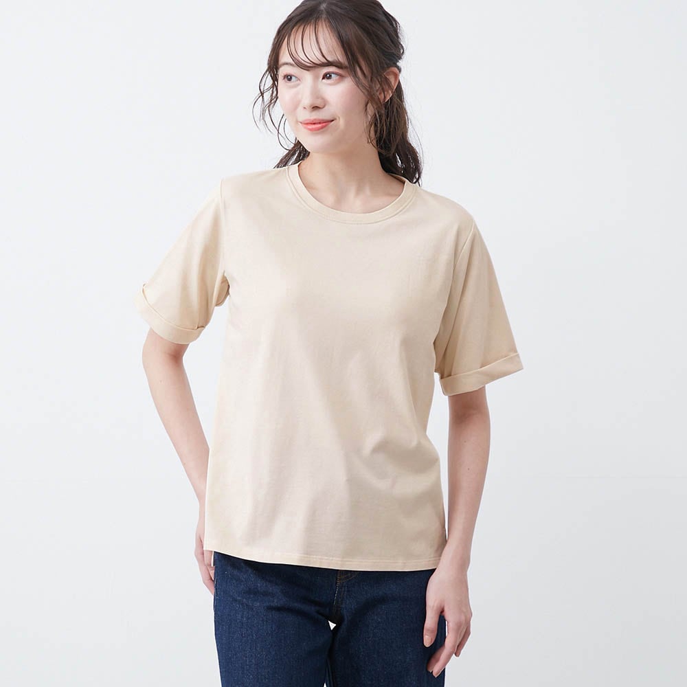 ゆるここカップ付き綿混半袖Tシャツ(背中フリー)