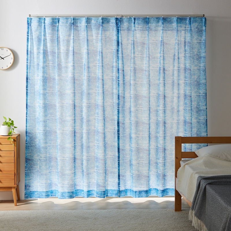 水彩タッチデザインレースカーテン