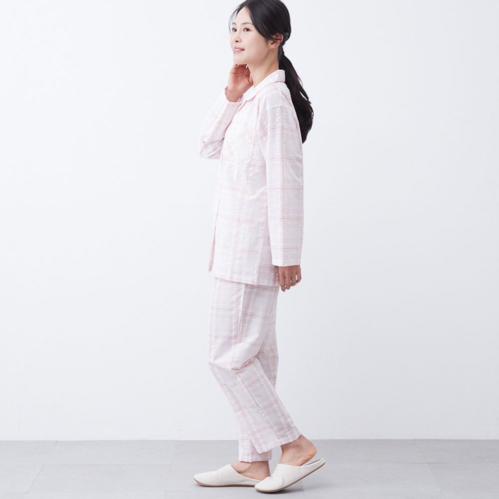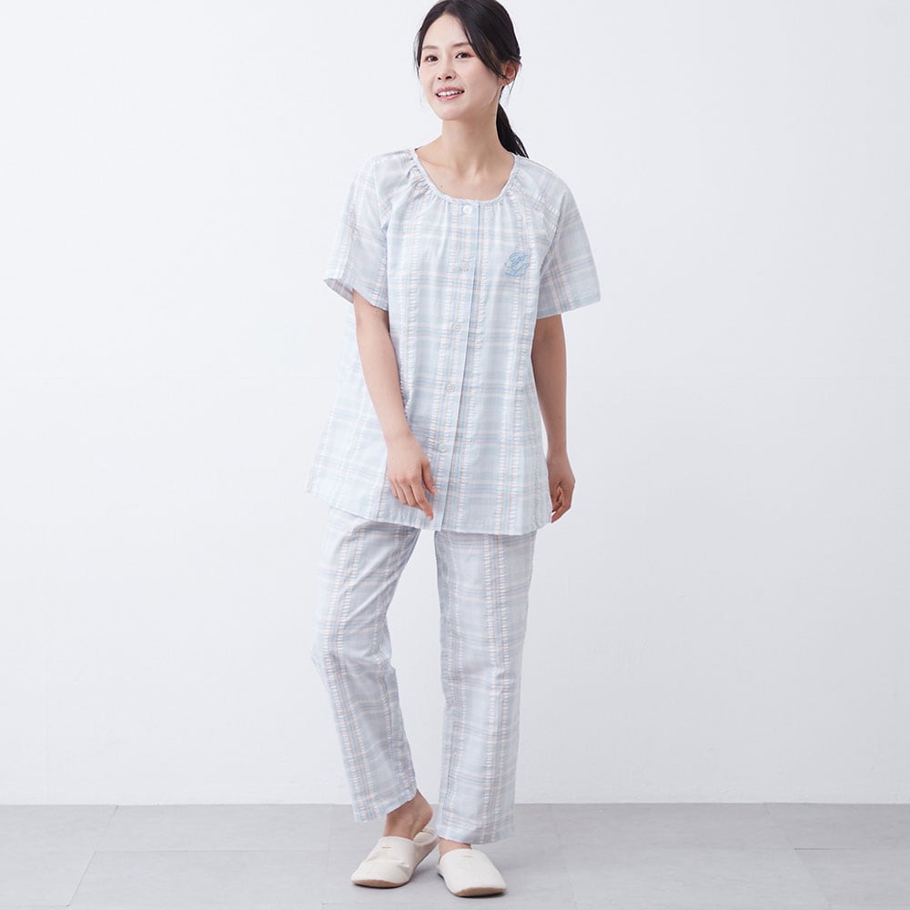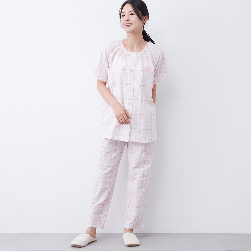 ・パンツは夏冷えにも安心な長ズボンでらくちんな着心地のウエスト総ゴム仕様(ゴム取り替え口あり)。