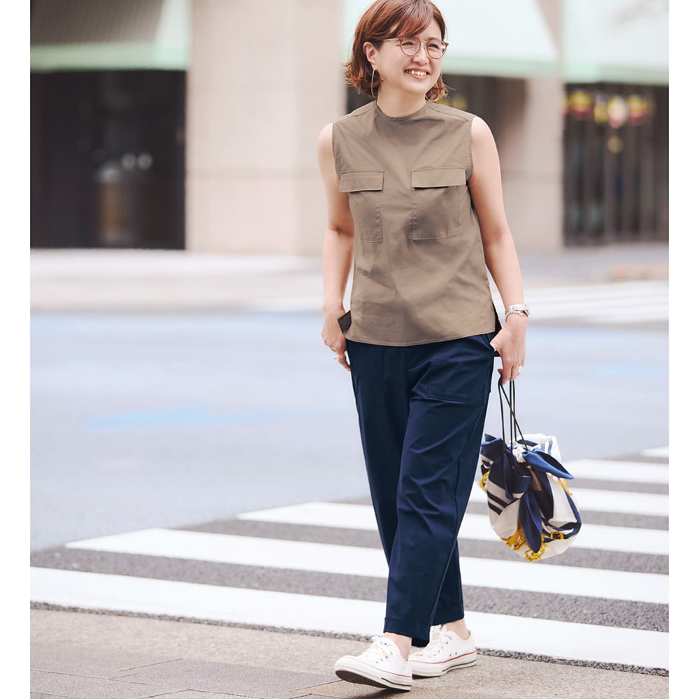 大人に似合うノースリーブはラインが決め手