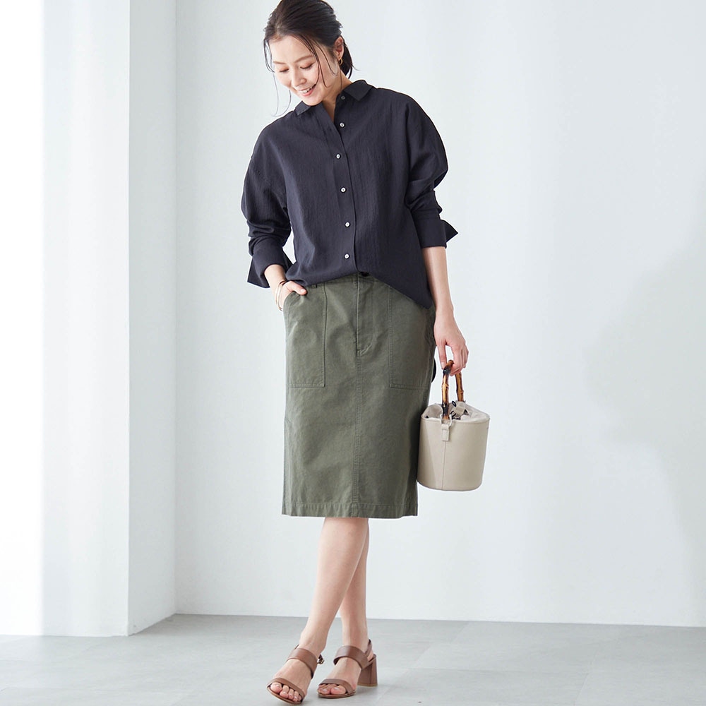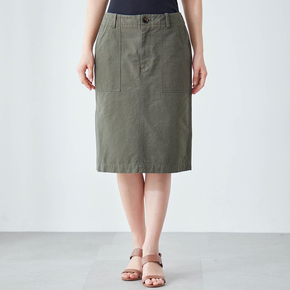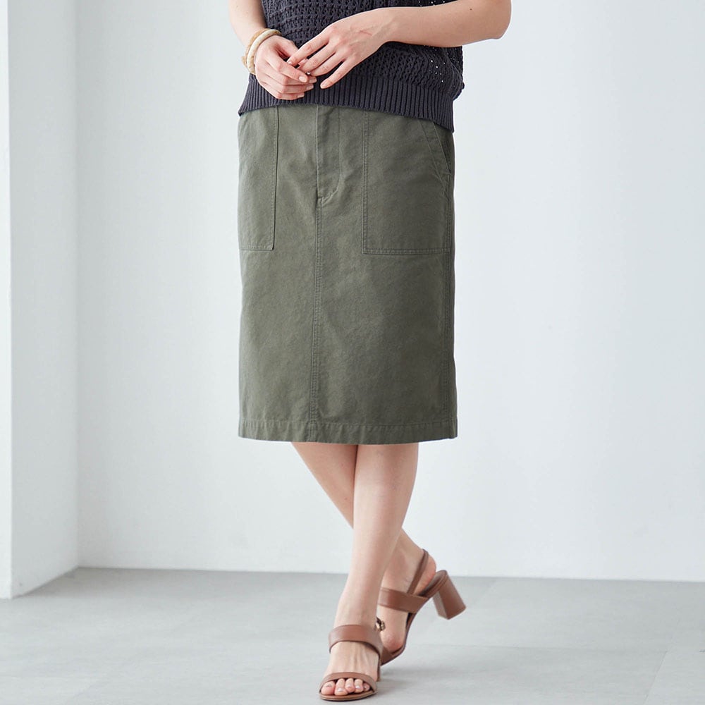 すっきりとした印象のIラインのミドル丈スカート