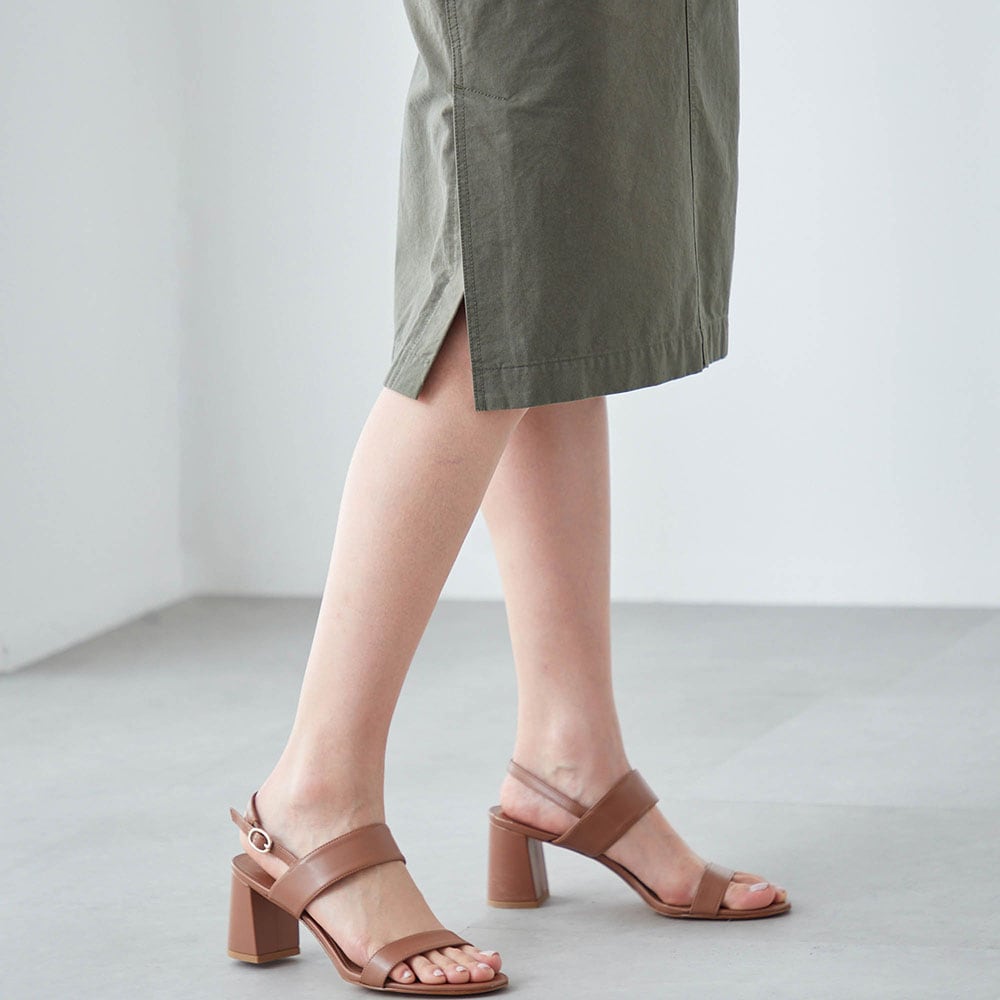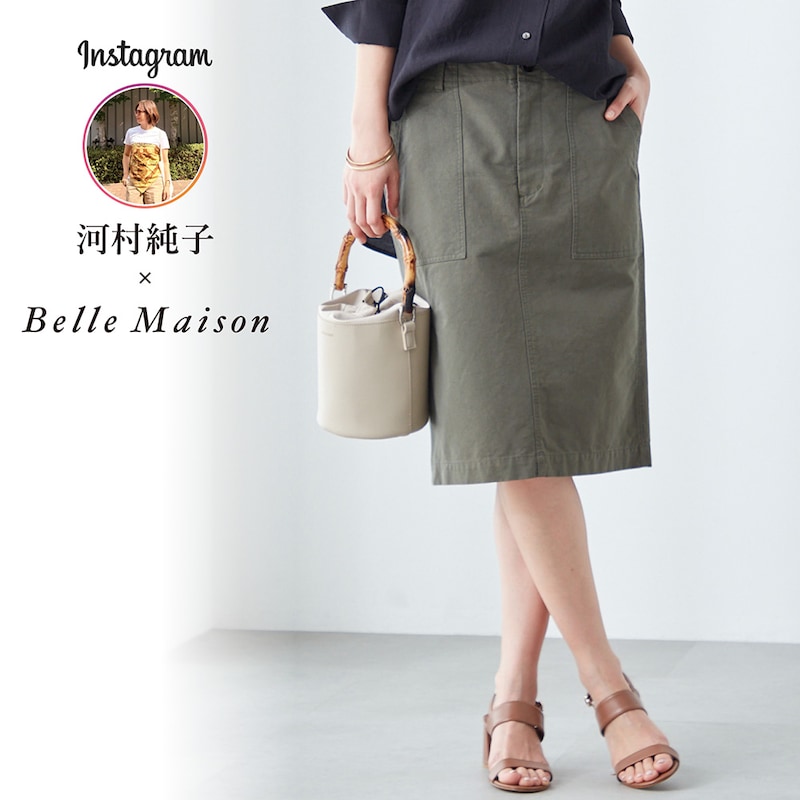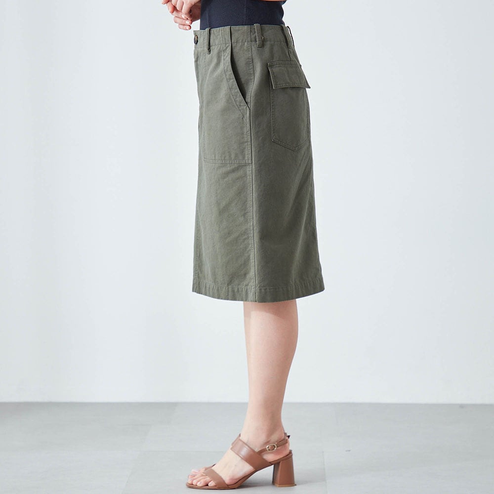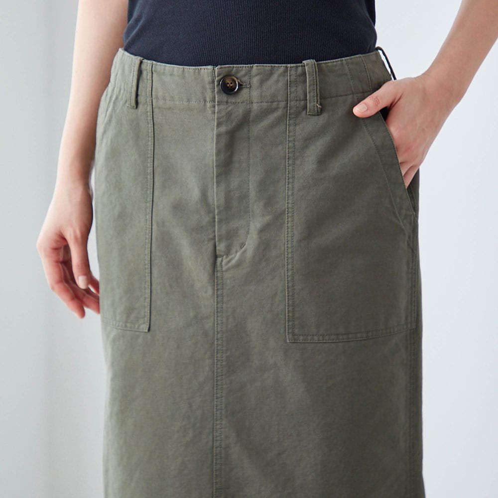 すっきりとした印象のIラインのミドル丈スカート