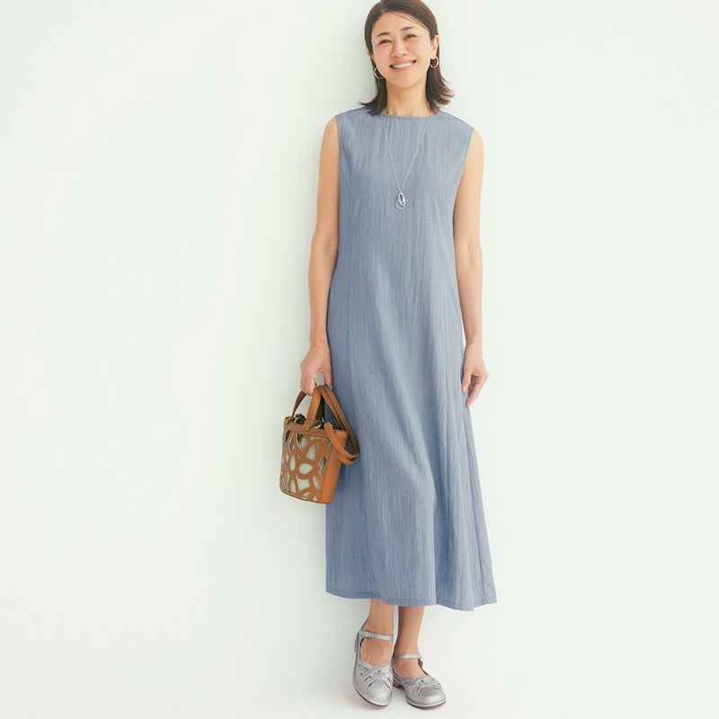 ウエストサイド切替えの視覚効果で着やせ効果は抜群!