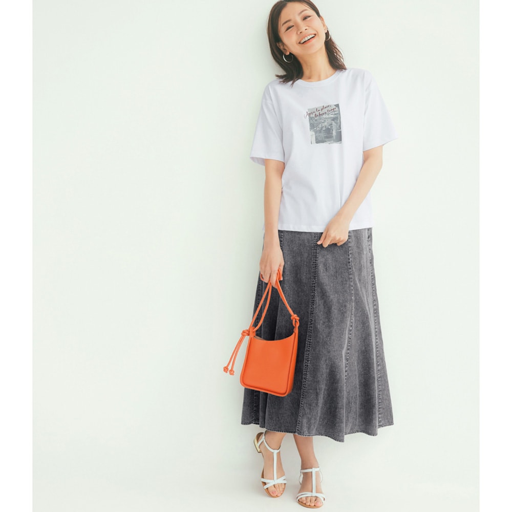 前後差のある丈感と両脇のスリットが、軽やかな腰まわりを演出