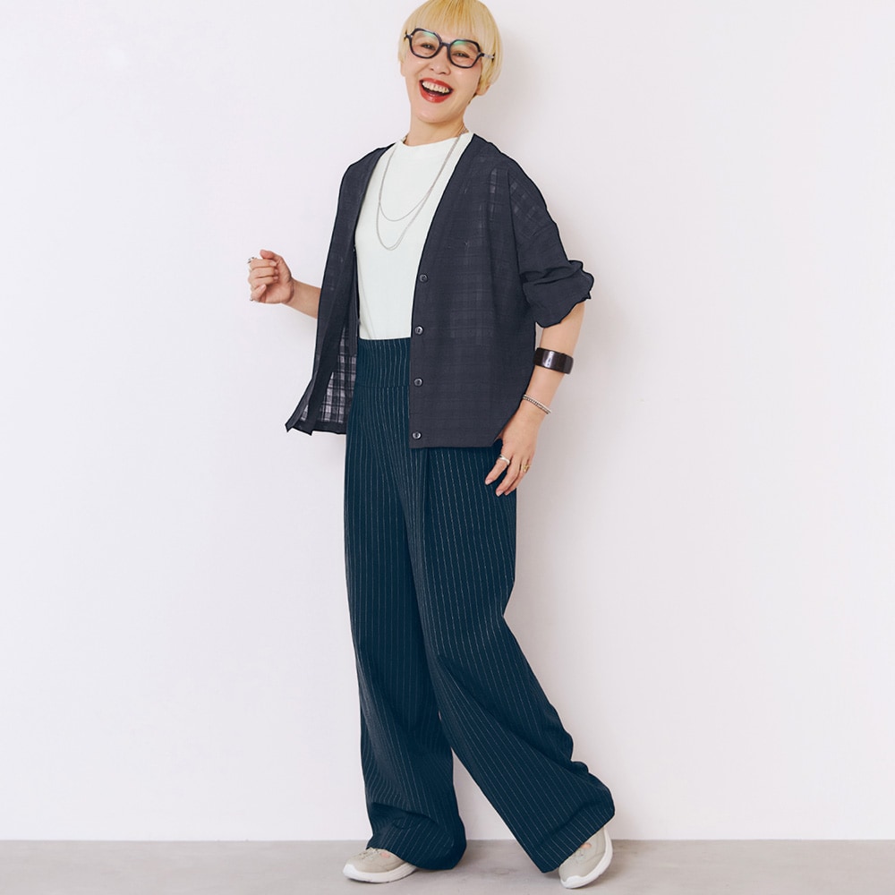 気になるお腹や腰まわりをすっきり見せて脚長効果も秀逸