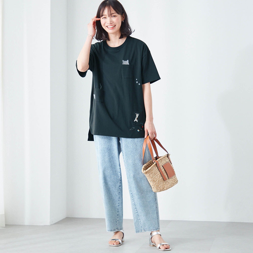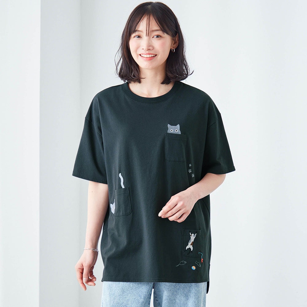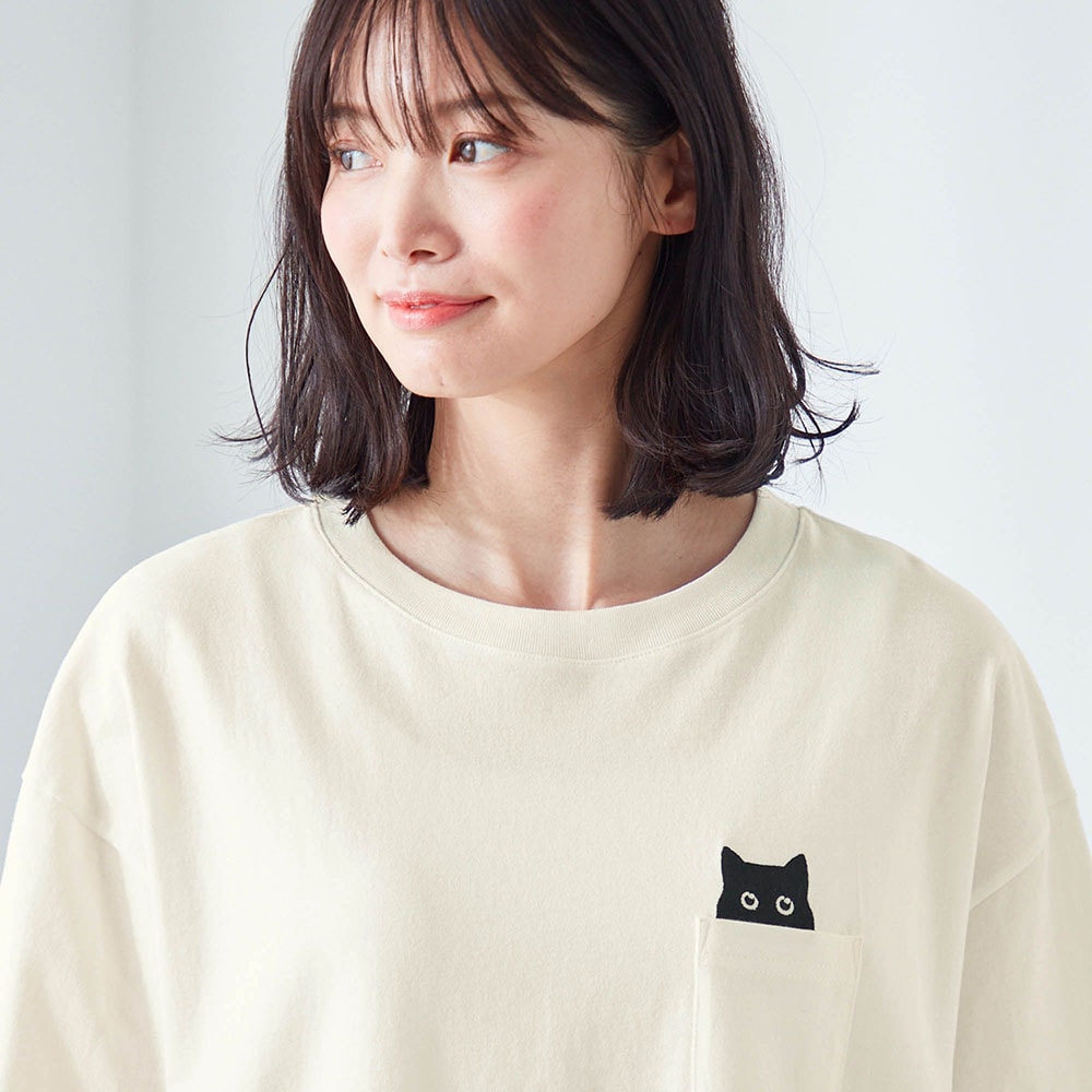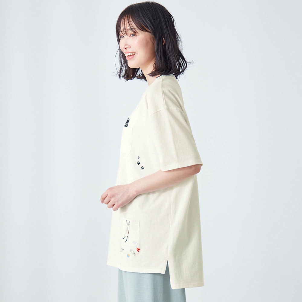 ネコ刺繍チュニックプルオーバー