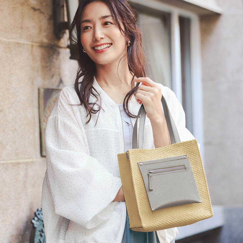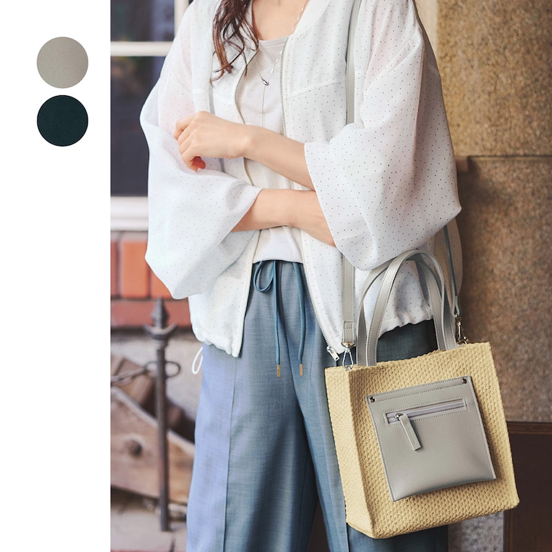 ・爽やかさのあるコンビ素材のショルダーバッグ