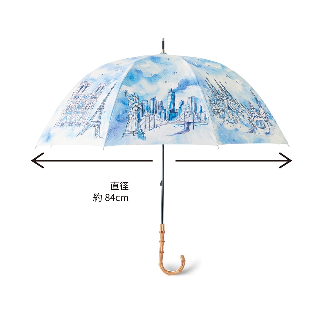 ・世界の名所が描かれた柄に心ときめく、晴雨兼用の長傘