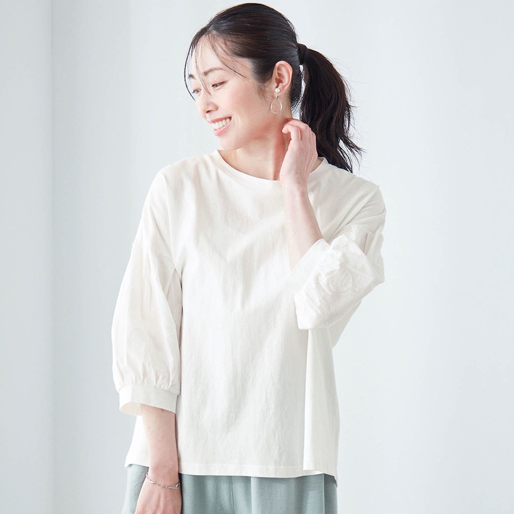 立体感のあるふわっと袖が、二の腕を華奢に見せるプルオーバー