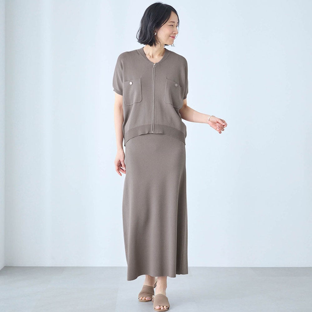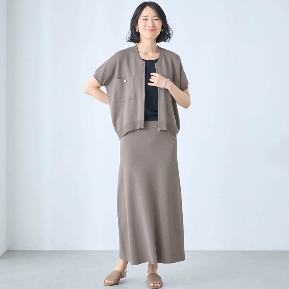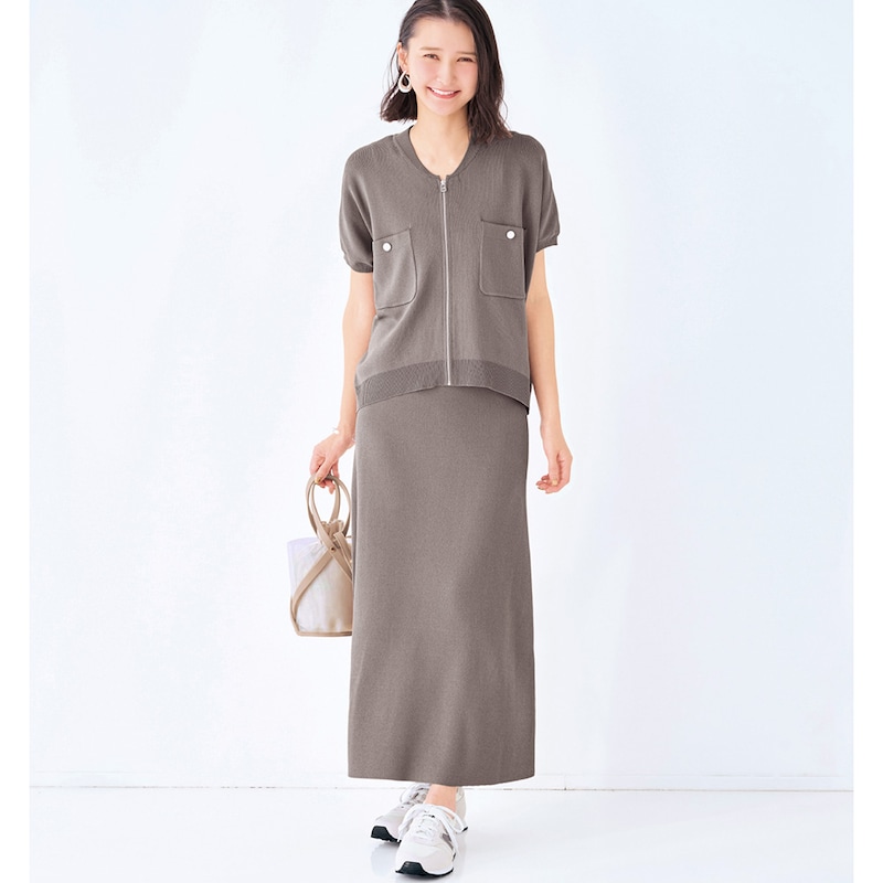 夏のニットブルゾン&スカート