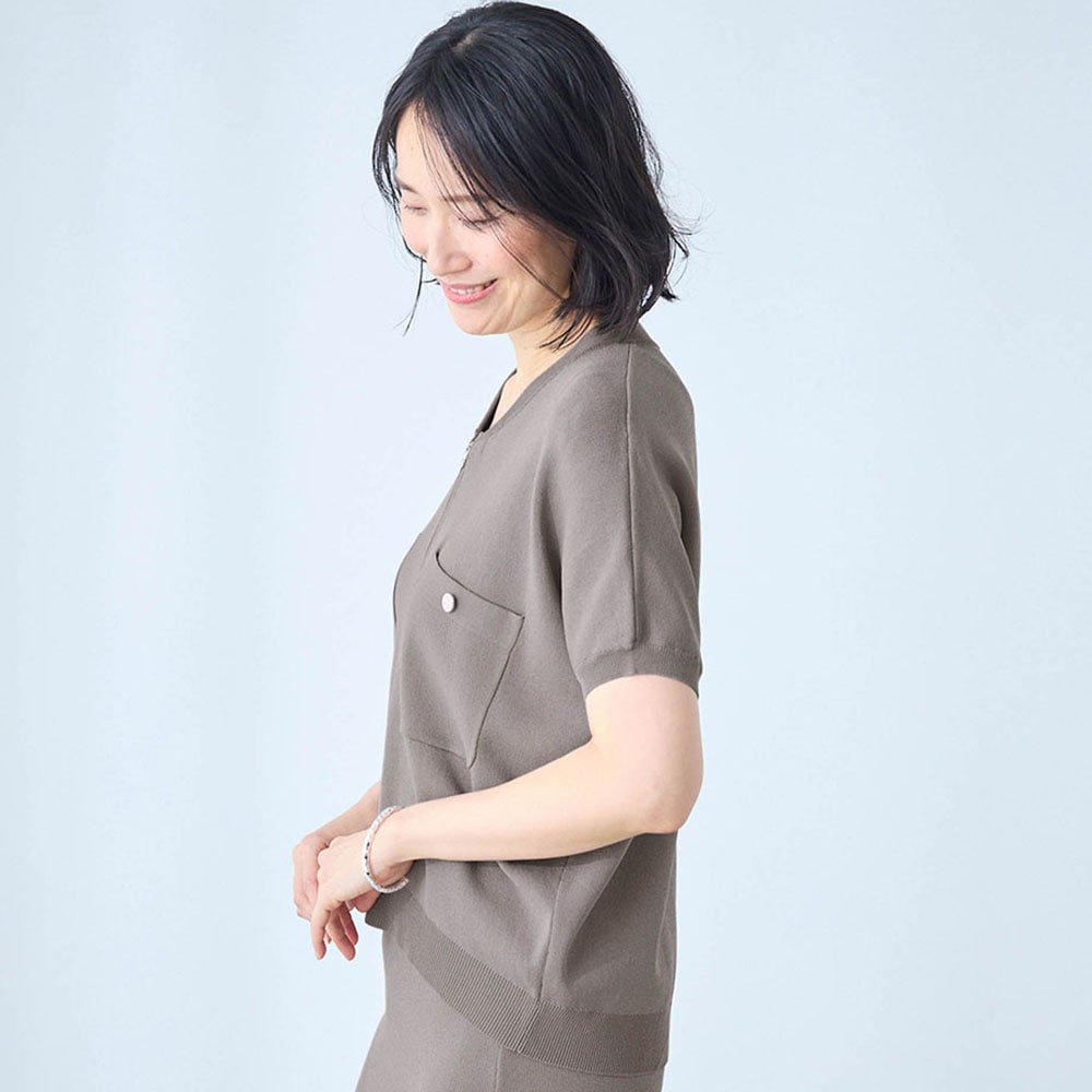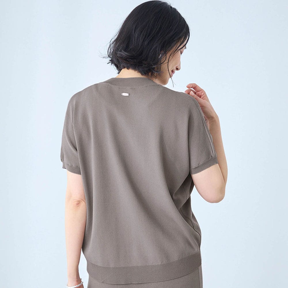 • 触れたときにひんやり感じるレーヨン混のニット素材